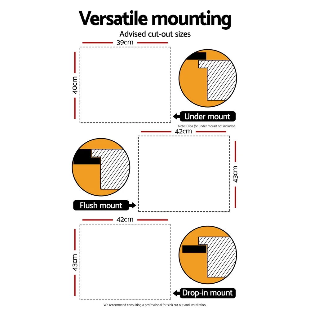 The Cefito Stainless Steel Sink is built to exacting standards so that you get the very best of quality materials and craftsmanship. It is crafted from heavy-duty food-grade 304 stainless steel comprising a minimum of 18% chromium and 9% nickel. The surface is nano-coated to be scratch-proof, oil-proof and more importantly, bacteria-free. The 3mm thick sink also features an X-flume design for easy drainage, eco-friendly anti-condensation paint, sound-deadening pads and R10 rounded corners for safety and easy cleaning. Suitable for drop-in, flush-mount or under-mount installation, our stainless steel sink should have a definitive place in your uncompromising kitchen.