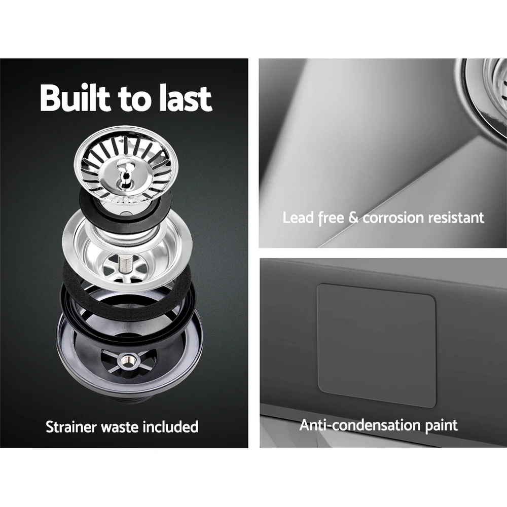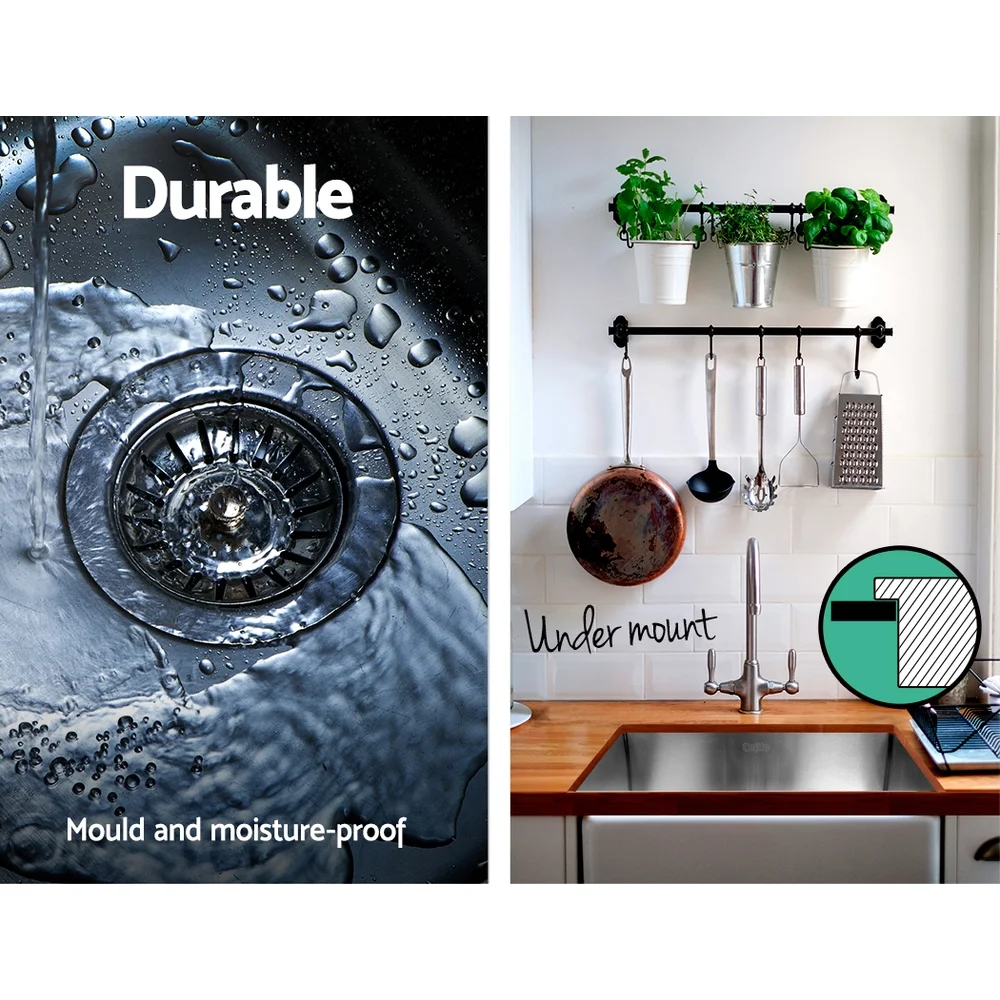 The Cefito Handmade Stainless Steel Sink is built to exacting standards so that you get the very best of quality materials and craftsmanship. It is crafted from heavy-duty food grade 304 stainless steel, unlike others that are made from inferior 201 grade or 304 imitations. Built to be scratch-proof, oil-proof and more importantly, bacteria-free, the silky-smooth satin-coated stainless-steel sink also features an X-flume design for easy drainage, deep and wide bowl for practicality, R10 rounded corners for safety and easy cleaning, eco-friendly anti-condensation paint, and five sound-deadening pads. Suitable for drop-in, flush-mount or under-mount installation, our stainless steel sink should have a definitive place in your uncompromising kitchen.