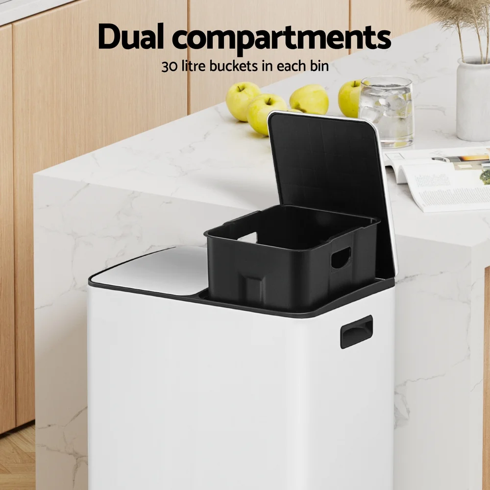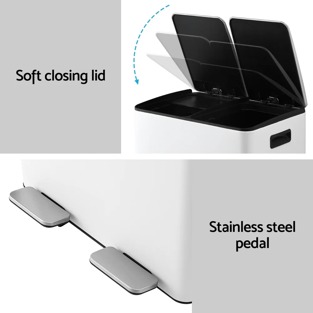 Introducing the Cefito Pedal Bin, a sleek and modern solution for your waste management needs. Crafted from sturdy carbon steel and featuring a contemporary design, this bin is built to last. Its anti-rust and waterproof properties ensure long-lasting durability, while the stainless pedal allows for easy and hygienic operation. With its soft closing mechanism, the bin provides a quiet and seamless experience. Its modern rectangular shape and dual-compartment design make it perfect for easy garbage sorting. Each bin has a generous 30L capacity, providing a total of 60L for all your waste disposal needs. Additionally, this bin is not only durable but also easy to clean, making maintenance a breeze. Upgrade your waste management system with the Cefito Pedal Bin today.