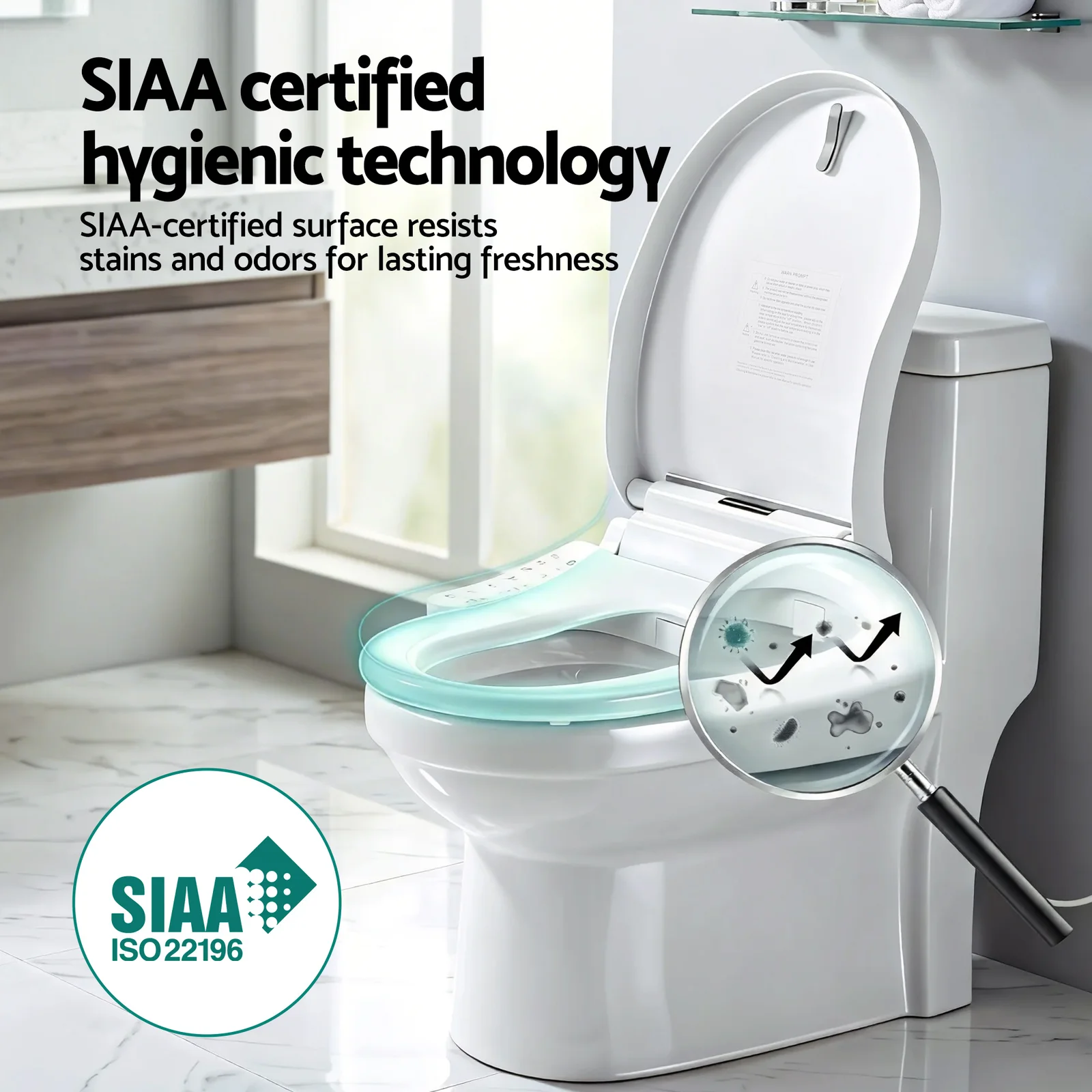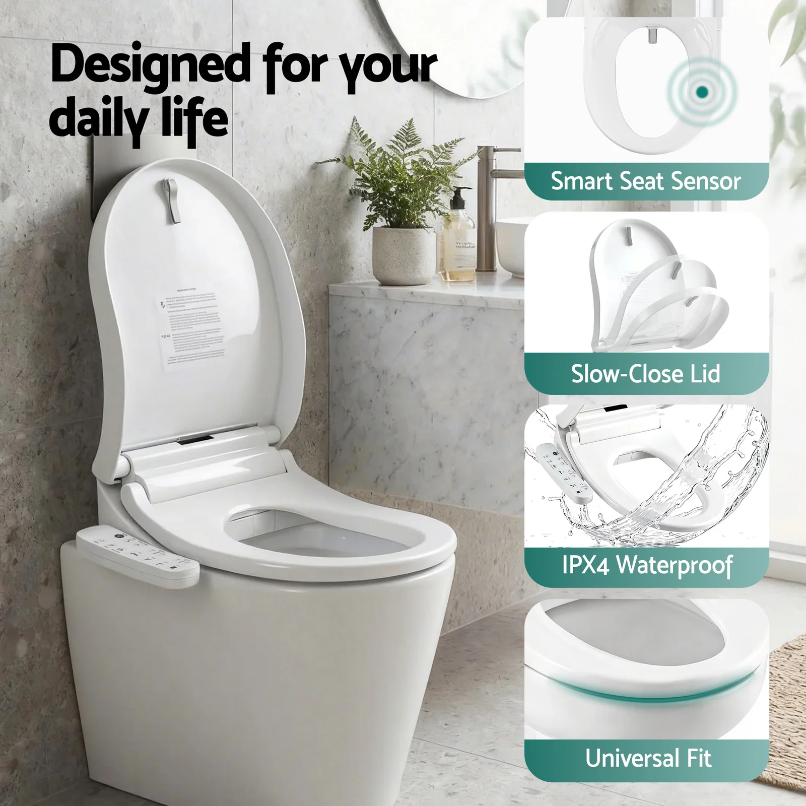 IPX4 waterproof & slow-closing lid