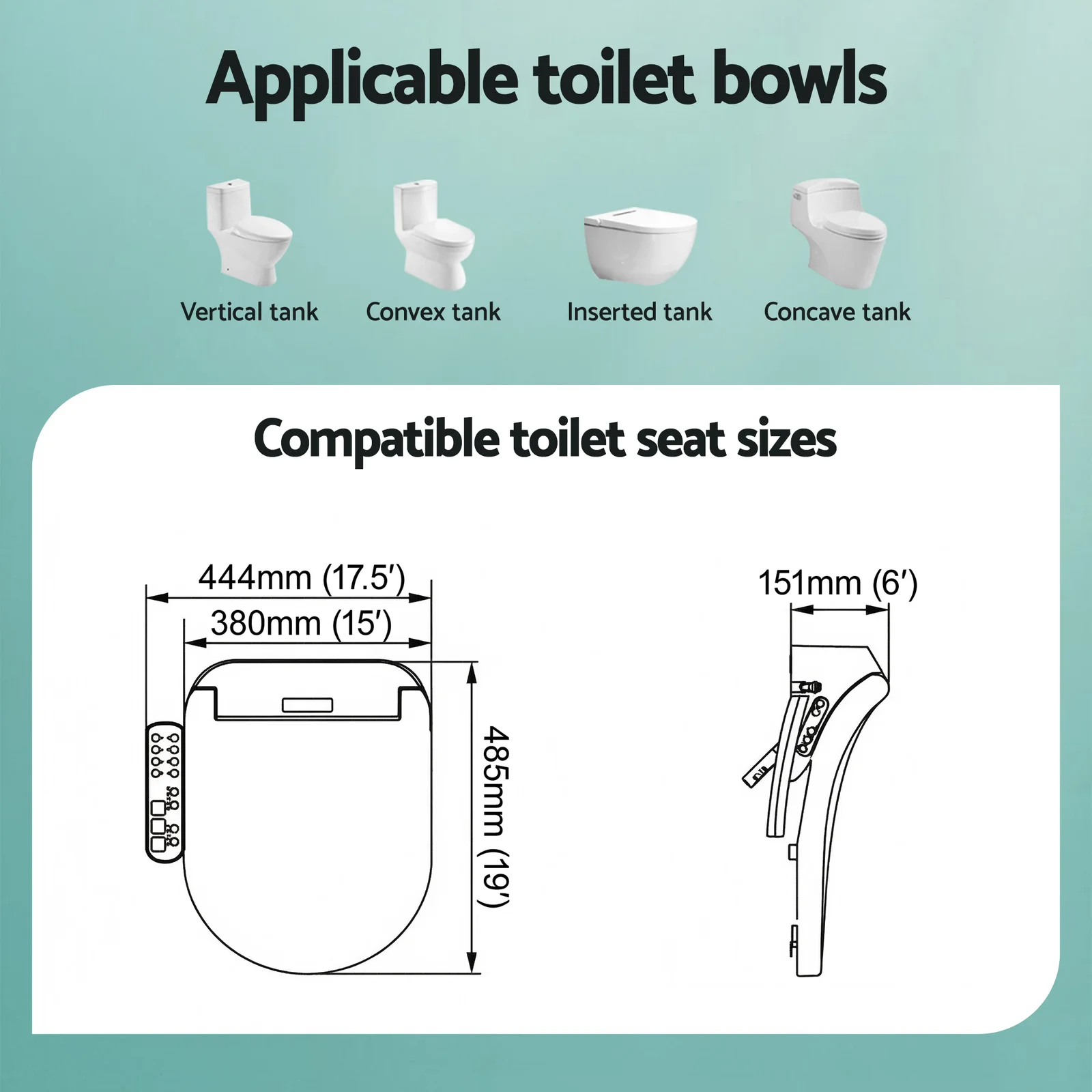 Experience the next level of bathroom comfort with the Cefito Smart Bidet Toilet Seat. Featuring a modern LED screen display, it allows you to easily monitor water and seat temperatures at a glance. Fully WaterMark and SAA certified, this seat offers an SIAA approved hygienic surface and a self-cleaning stainless steel nozzle. Enjoy a luxurious clean with a 4-level heated seat, warm air dryer, and specialised wash modes for the whole family.