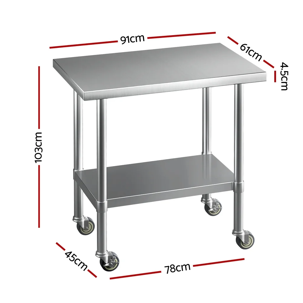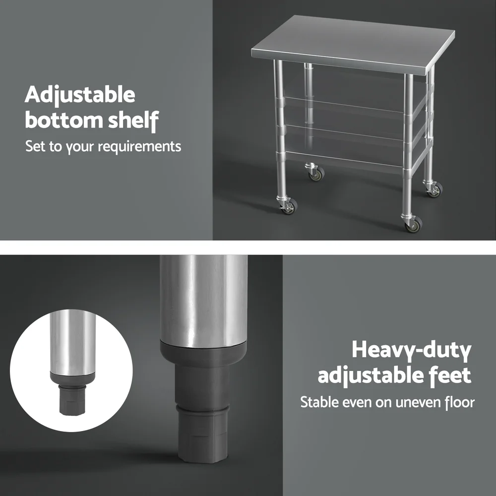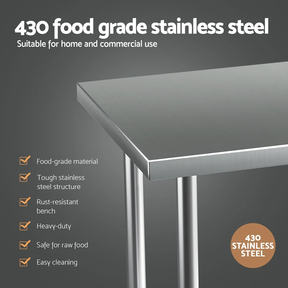 Made of 430 graded stainless steel, you can be assured that it will be a long lasting item in your kitchen. Fitted with lockable castors, stability is no longer an issue. Don't worry of tumbling bench anymore. Can be easily flat-packed for portable and on-site work, it is your first choice at all times.