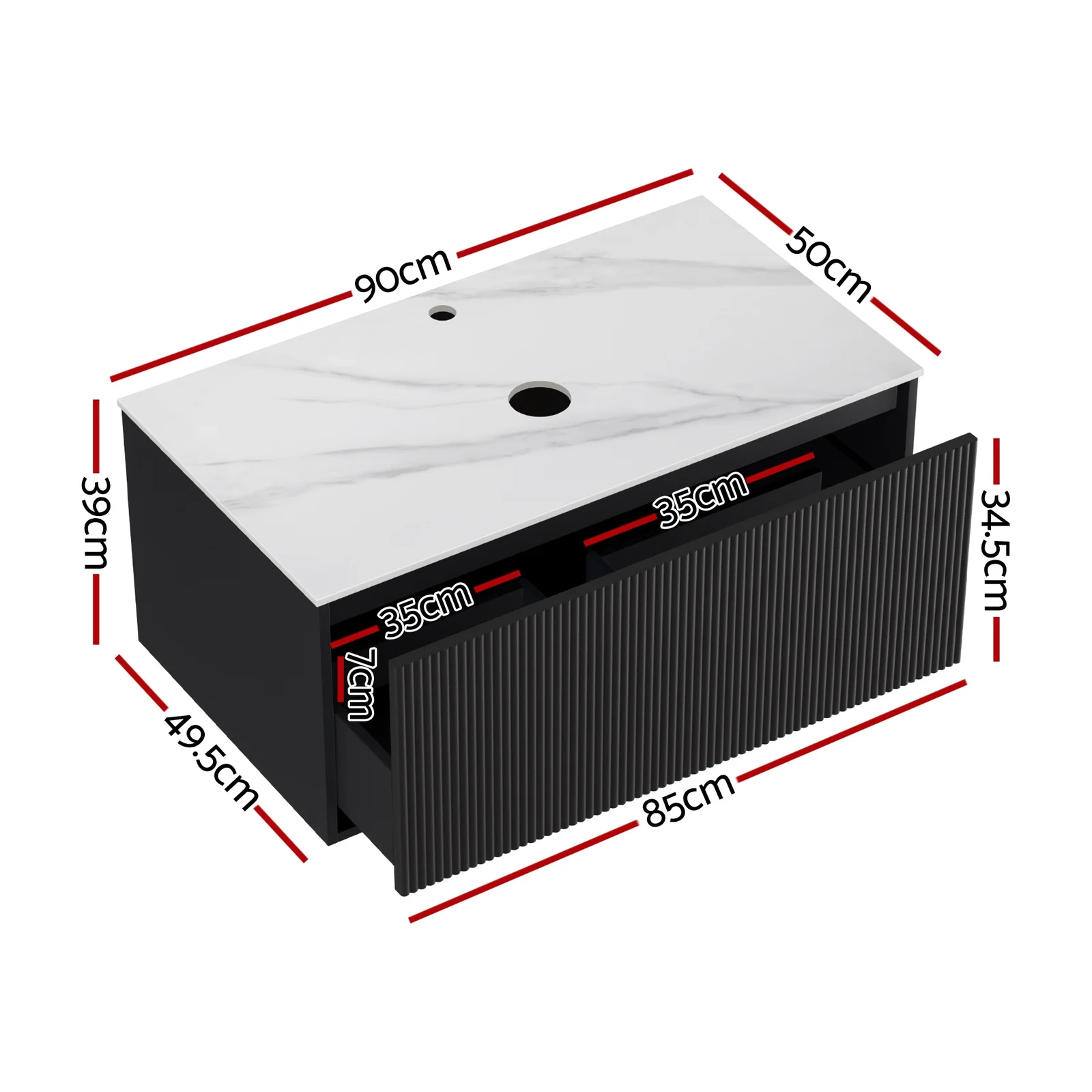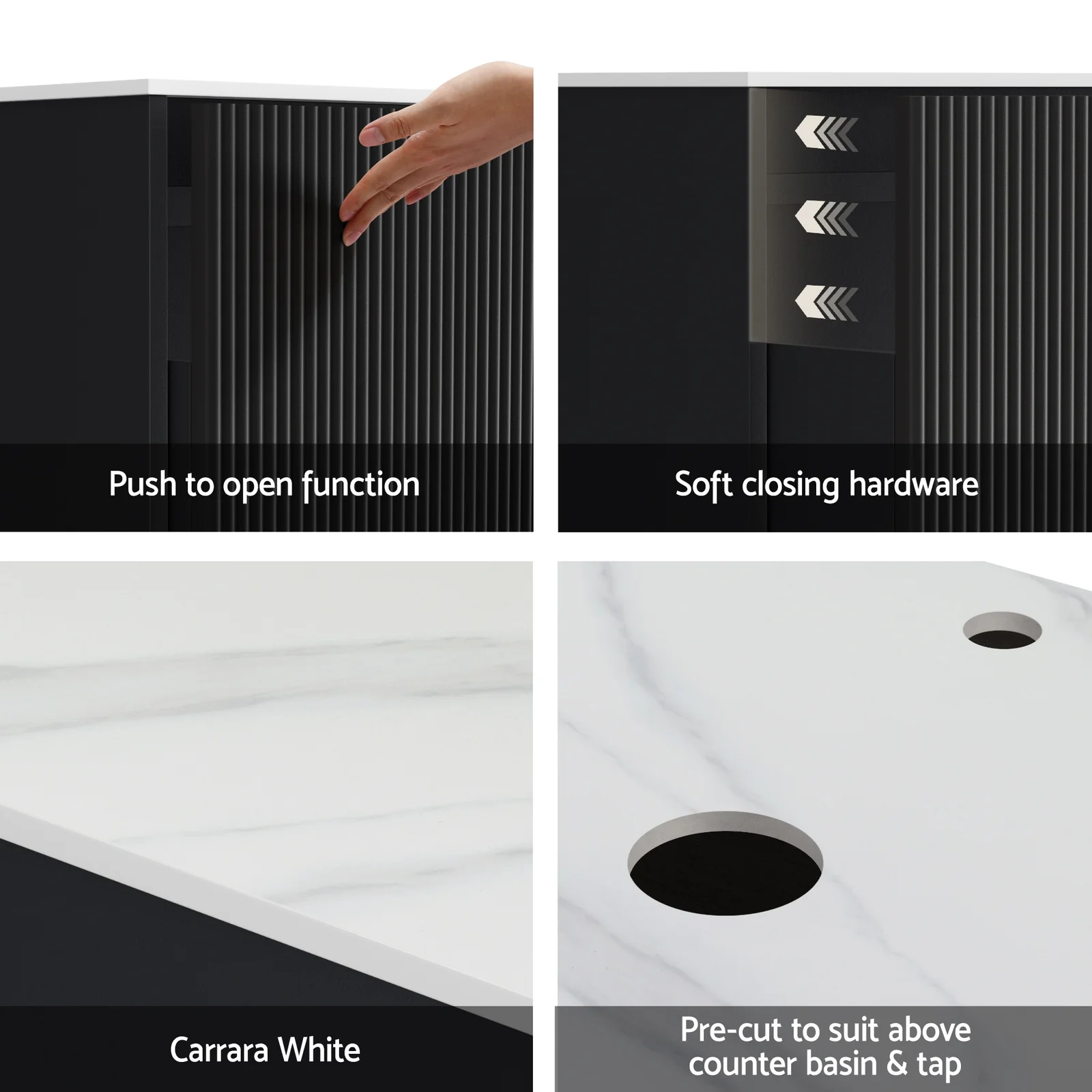 Colour: Black (cabinet) / White (countertop)