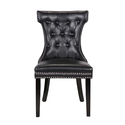 Century dining chairs offer an aesthetic look with its curved backrest and lion ring n nails. Its padded, upholstered seat and foam filled back rest are a treat to the eyes. The quilting is adorned with fabric covered button. Moreover, its edge has been given button studding for a stylish look.