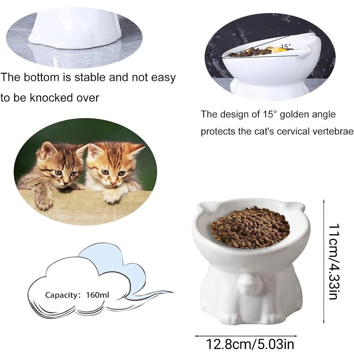Ergonomic Tilt Design: 15° angled bowl reduces strain on your cat's neck and promotes a healthier eating posture.