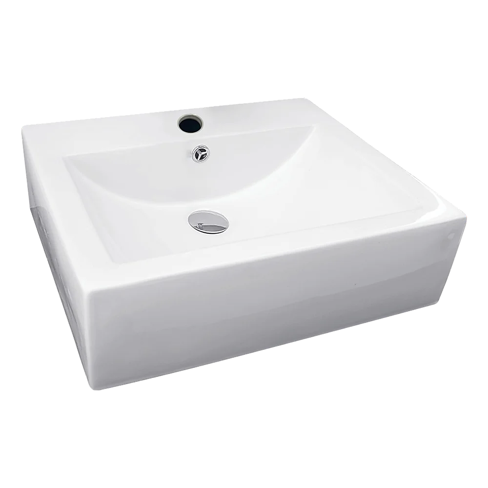 This chic designer ceramic above-countertop rectangular basin is perfect for the individual bathroom renovation or for the housing contractor.