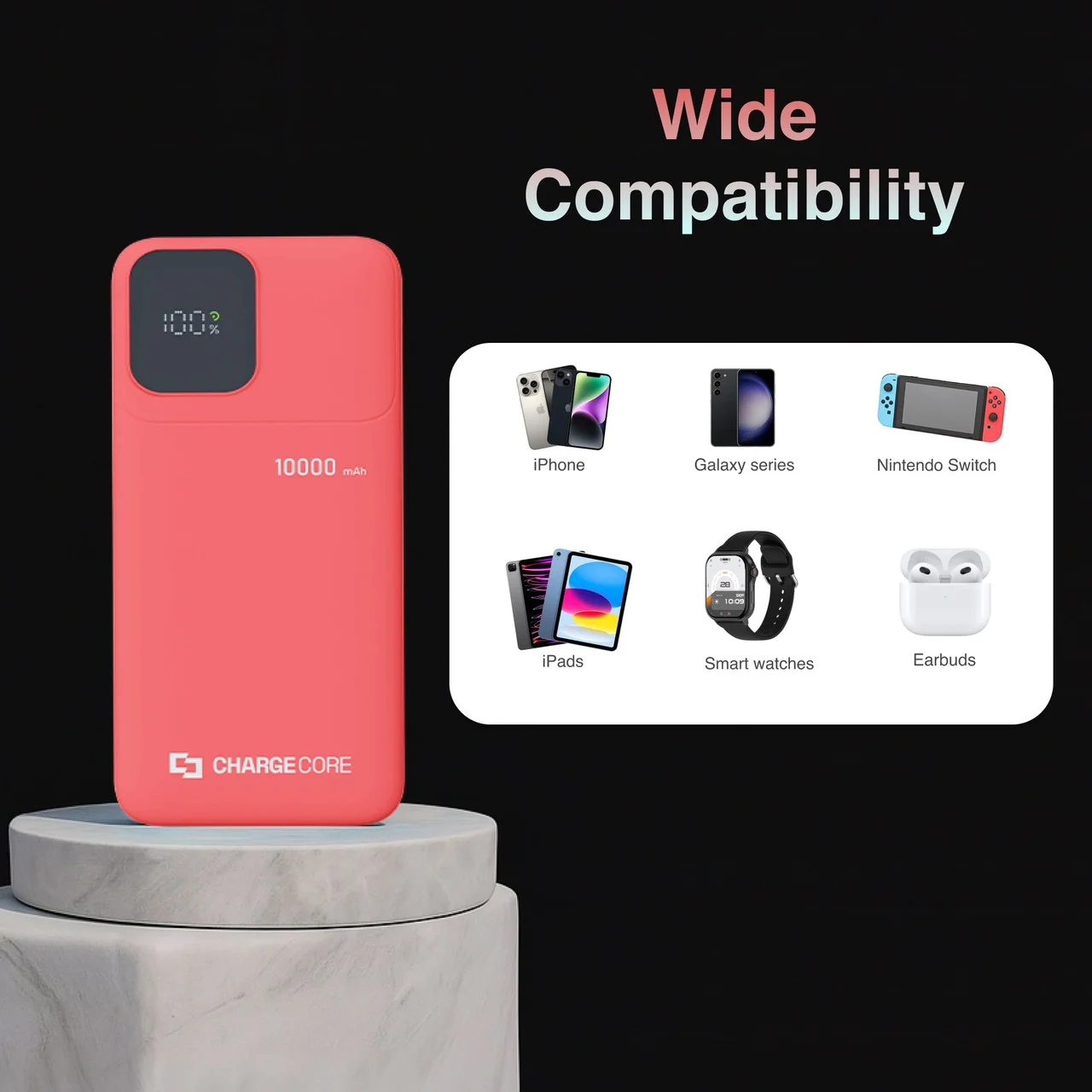 The ChargeCore SafeCharge Max 10000mAh Power Bank Sunset Coral uses advanced LiFePO₄ technology for enhanced safety, durability, and a longer lifespan, delivering reliable power for years.