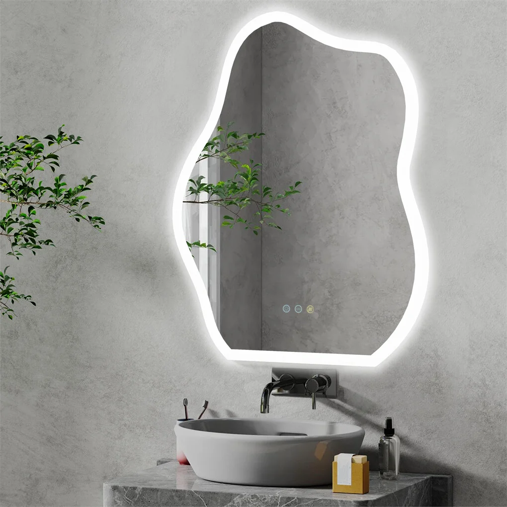 Cloud-like Lighted Mirror Whether you're looking to enhance your daily routine or simply elevate the look of your bathroom, this mirror sure to do it, its aluminum frame resistant to wear and damage, hand-polished edges won't hurt your hands, adopted with certificated electronic components, safe for use, two hooks pre-installed on the back vertically hung on the wall, powered by a standard plug for easy installation and relocation to any areas without need for wiring, each mirror comes in a super-secure package that passed drop and impact tests, ensures it arrives in good condition
