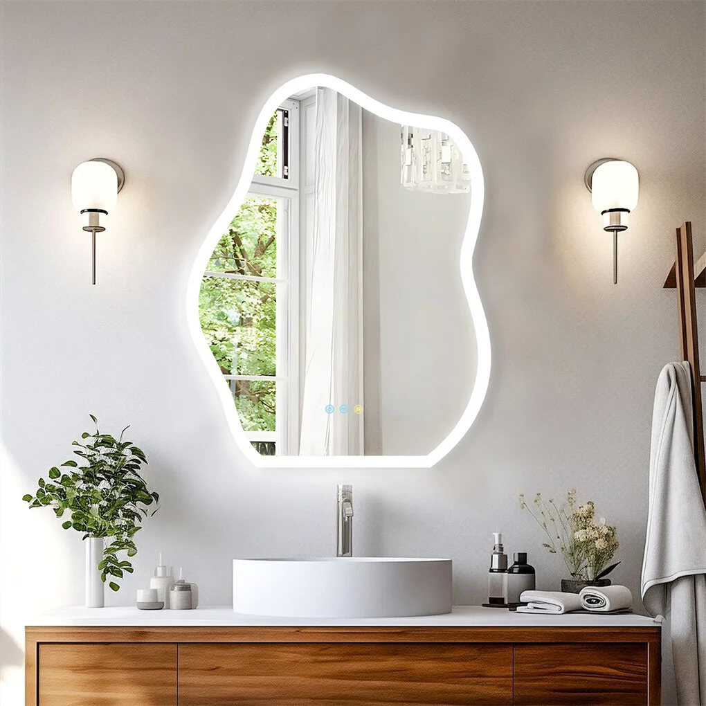 Irregular Cloud Shaped Mirror This irregular shape draws inspiration from natural cloud formations, evoking a sense of lightness and whimsy that elevates the ambiance of space, the cloud-like silhouette breaks away from traditional rectangular or circular forms, brings an element of visual interest and artistic flair to the overall, making it a standout piece that not only serves as practical purposes but also enriches the visual experience, refreshing your bathroom spaces