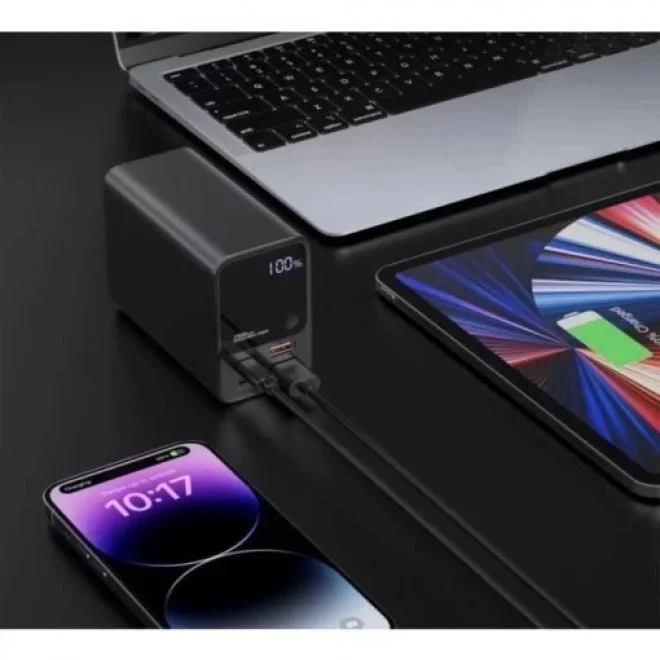 Universal mobile battery Choetech B635-BK is a powerful and reliable device that will help you charge your gadgets anywhere. The battery has a capacity of 27,000 mAh, which allows you to charge up to 10 times the iPhone 13 Pro Max or up to 6 times the MacBook Air M2.