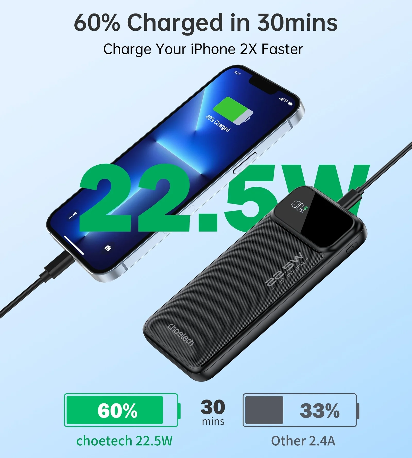 LED display show the exact percentage of the remaining power, so you can keep track of the current power at any time.