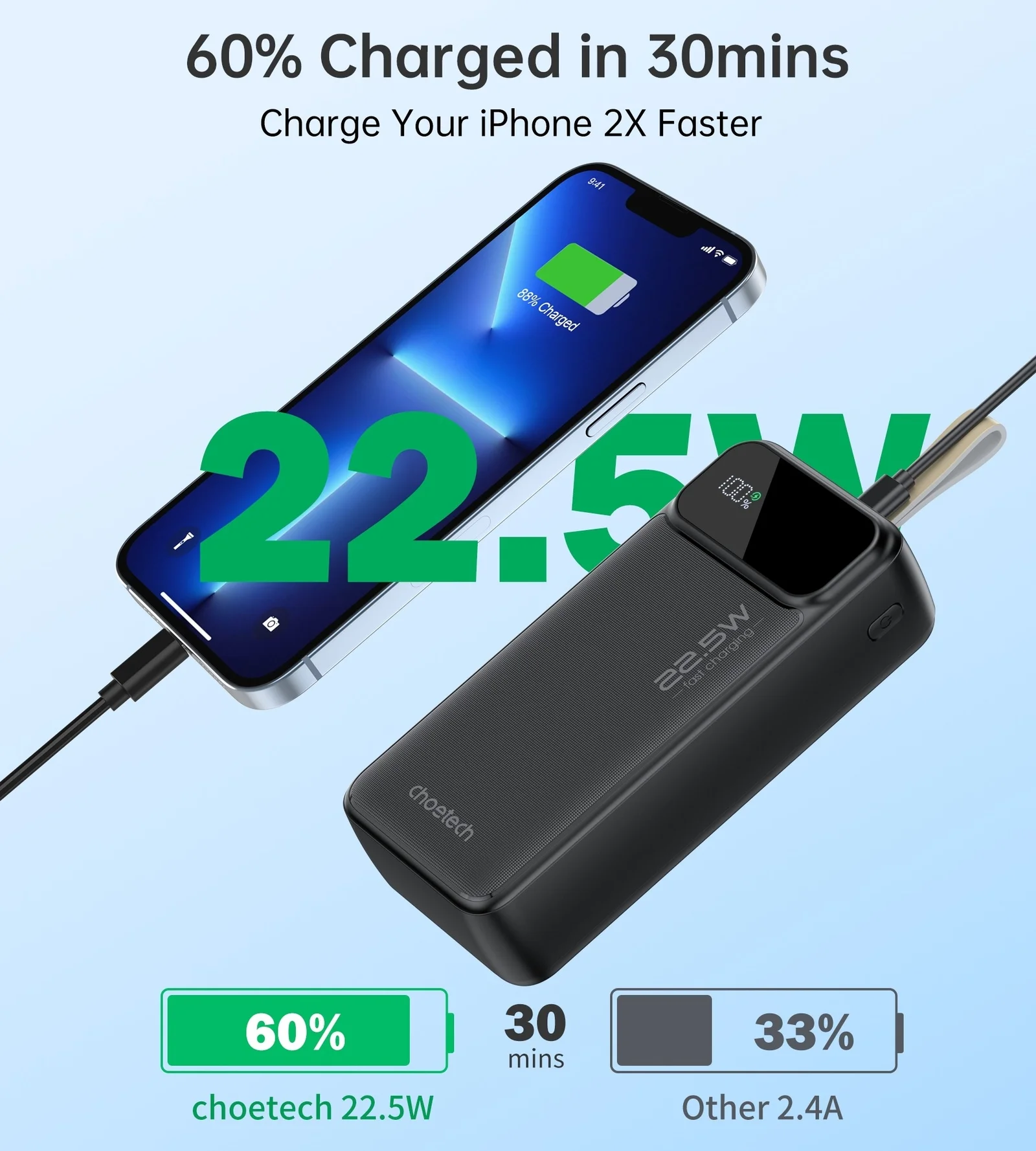 LED display show the exact percentage of the remaining power, so you can keep track of the current power at any time.