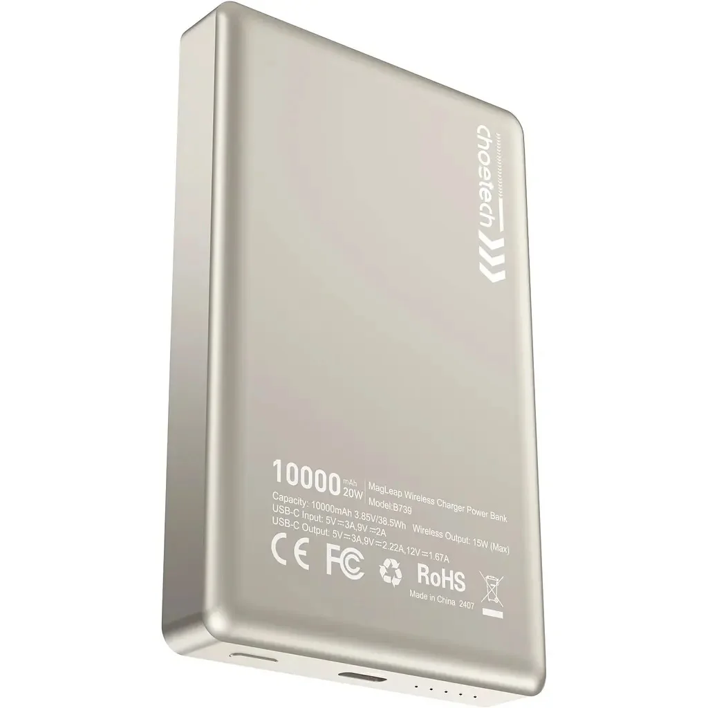 CHOETECH B739-WH 20W Slim USB-C 10000mAh Magnetic Power Bank - White