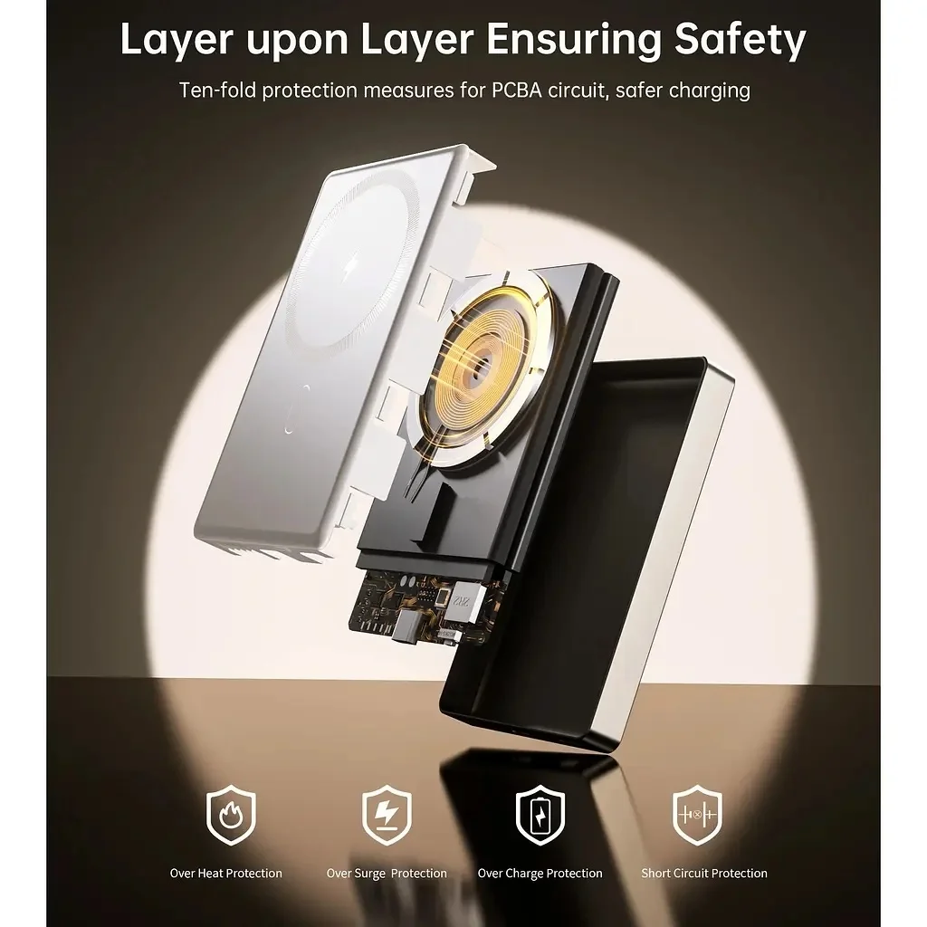 The powerbank is designed with ten-layer PCBA circuit protection, ensuring maximum safety for your devices. Protection against overheating, overvoltage, overcharging or short-circuit are just some of the advanced protections the B739 offers. So you can rest assured that your devices are fully protected while charging.