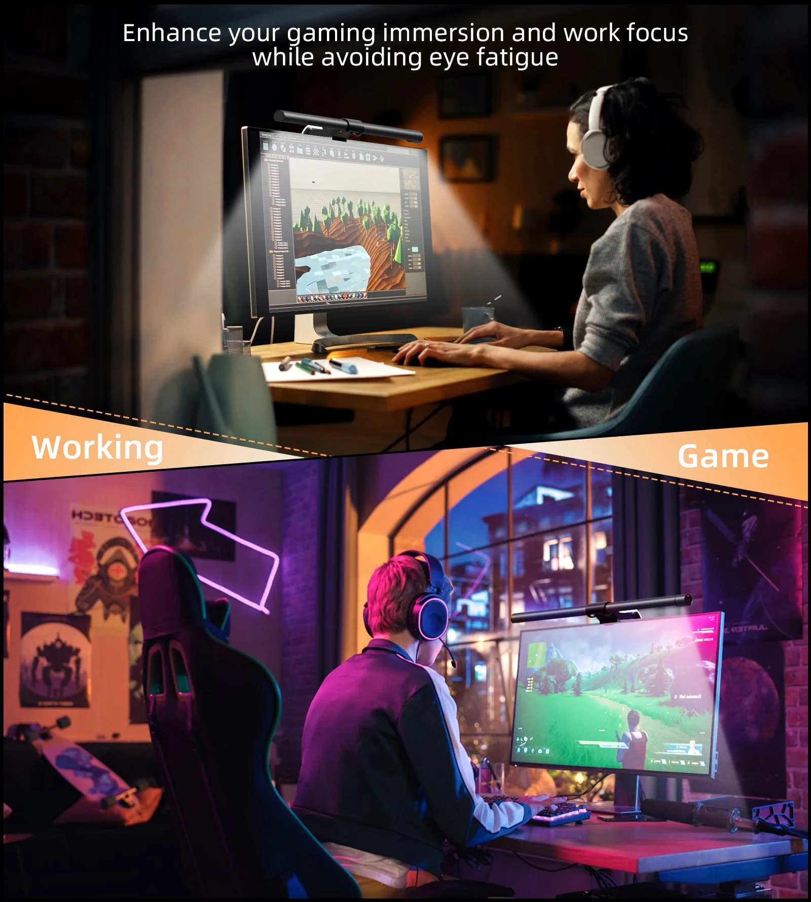 The lamp is a source of soft, diffused light , specially designed like this. that, despite mounting on the monitor, it does not illuminate the screen and does not shine in the user's eyes. The lamp has built-in LEDs imitating the color of light in the range of 2700K - 6500K. Thanks to the included wireless controller , you are able to change the parameters of the light without having to break away from your duties and approach it.