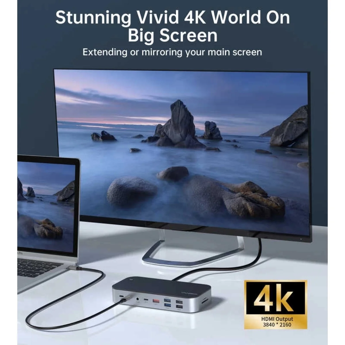 Cast your screen with HD HDMI adn VGA ports.HDMI resolutions is 4k, 3840x2160. Cast yoru screen for presentations or to setup multiple monitors. Use the Gigabit Ethernet port to connect to your home or workplace network.