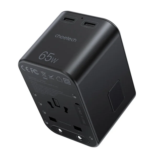 A charger that not only powers your phone, but also your tablet or laptop and can charge three devices at once? It has to be Choetech PD5009! This wall charger has three built-in ports: two USB Type C (max 65W) and USB (max 30W). When you connect your devices to all ports, Choetech PD5009 will charge them with a combined power of up to 60 watts. With GaN components, the charger is efficient, powerful and fast. The PD5009 supports Power Delivery fast charging standards. It will not be intimidated by any challenges!