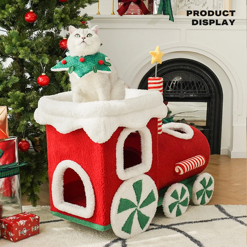 This Xmas train cat tree is a magic castle, park and cosy nest for your beloved cat. It is suitable for kittens.