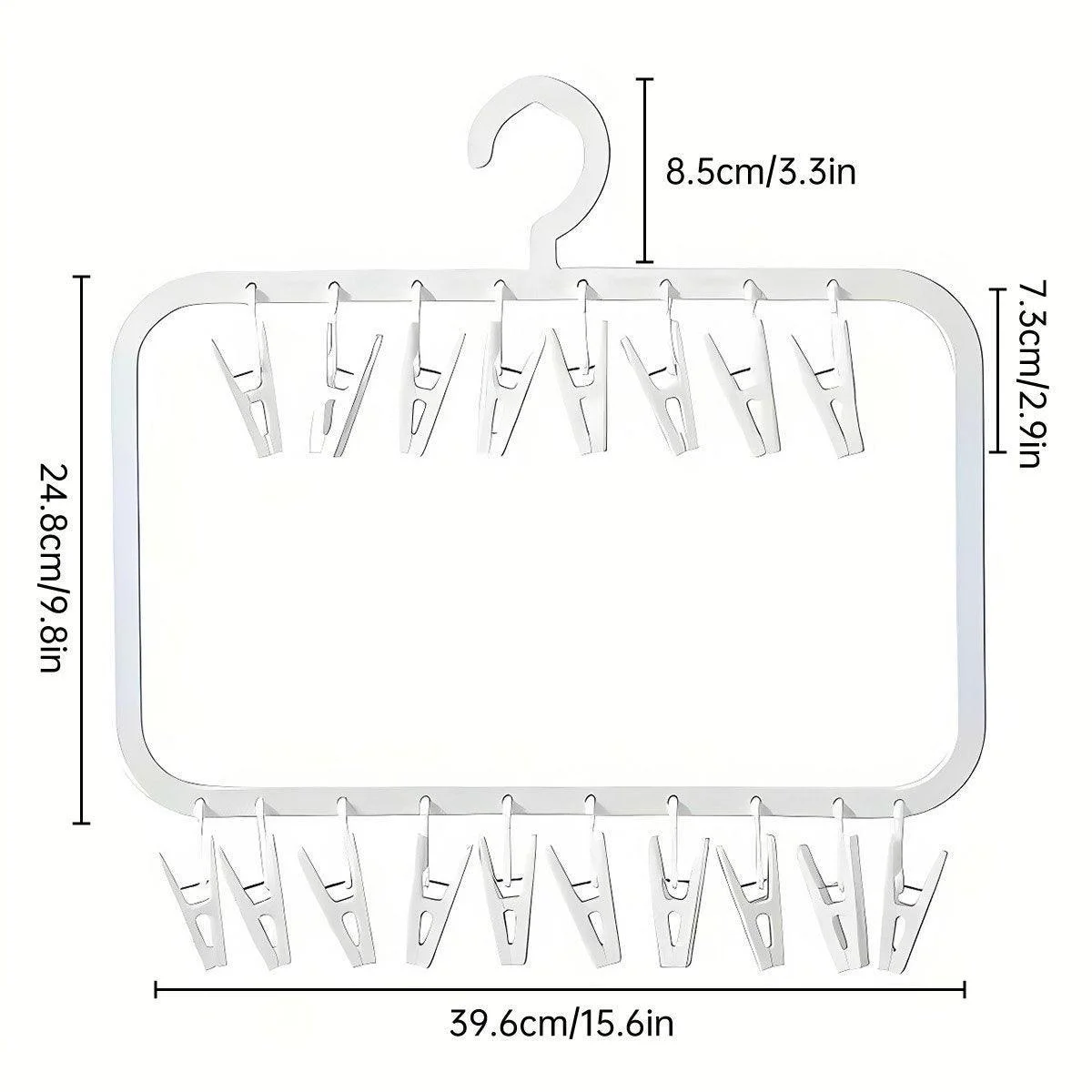 Versatile Clips: 18 removable clips on a double-layer rack, allowing for flexible use and ample space management.