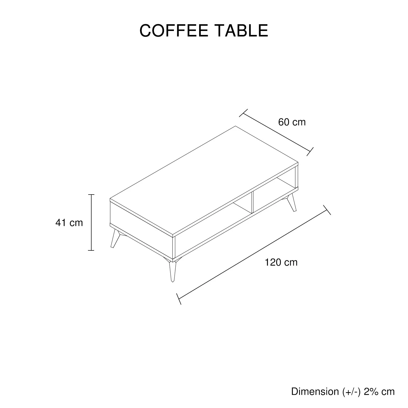 Maxwell coffee table is made of MDF which makes it very much strong and resilient. Again, melamine finishing on it ensures smooth texture.