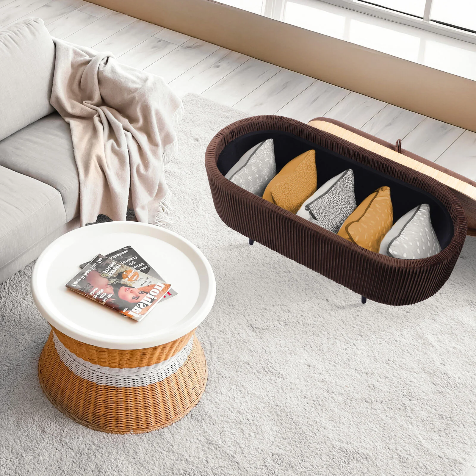 Ever wished your footrest could hold your secrets, double as a coffee tray, and still look effortlessly chic?