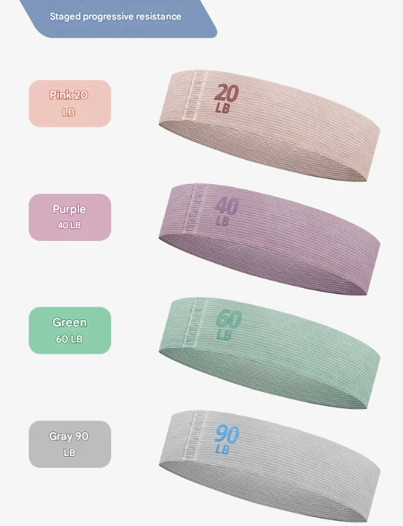 - Set of 4 Progressive Resistance Levels: Perfect for all fitness levels, this set includes four distinct resistance levels to match your strength and exercise needs: Pink (20 LB), Purple (40 LB), Green (60 LB), and Grey (90 LB). Start light and progress as you build strength.
