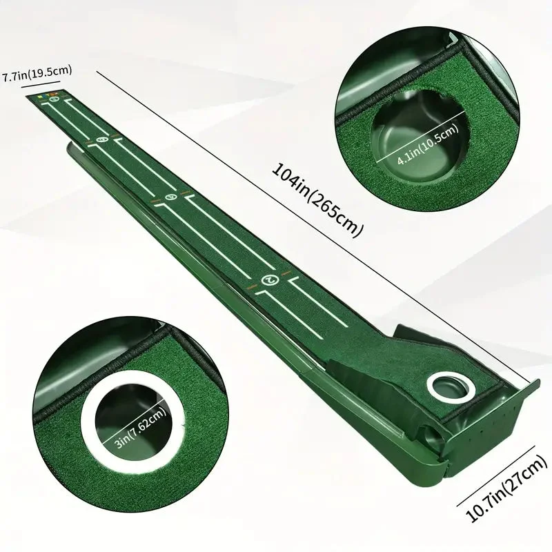 Description: Take your golf game to the next level with our Compact Edition Portable Golf Putting Training Mat. Whether you're at home, in the office, or on the go, this versatile putting mat allows you to practice your putting skills anytime, anywhere. Measuring 243.84cm (approximately 8 feet) in length, it provides ample space for you to refine your technique.