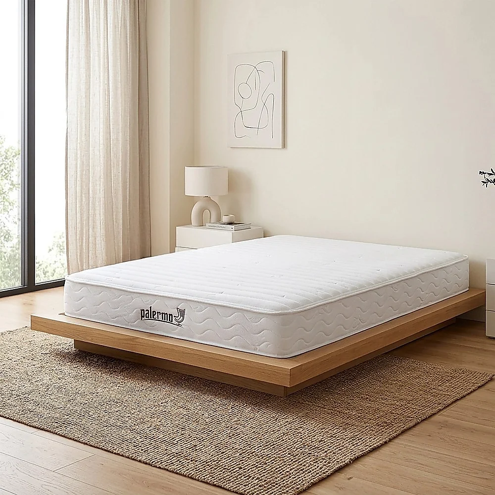 Sleep in comfort with the Palermo Queen Contour 20cm Mattress, designed with CertiPUR-US certified foam and 7.5 (19cm) 14-gauge pocket springs for lasting support. The individually encased coils contour to your body for even weight distribution and pressure relief, while the quilted foam layers on top and bottom provide a soft, cushioned feel that reduces coil sensation.