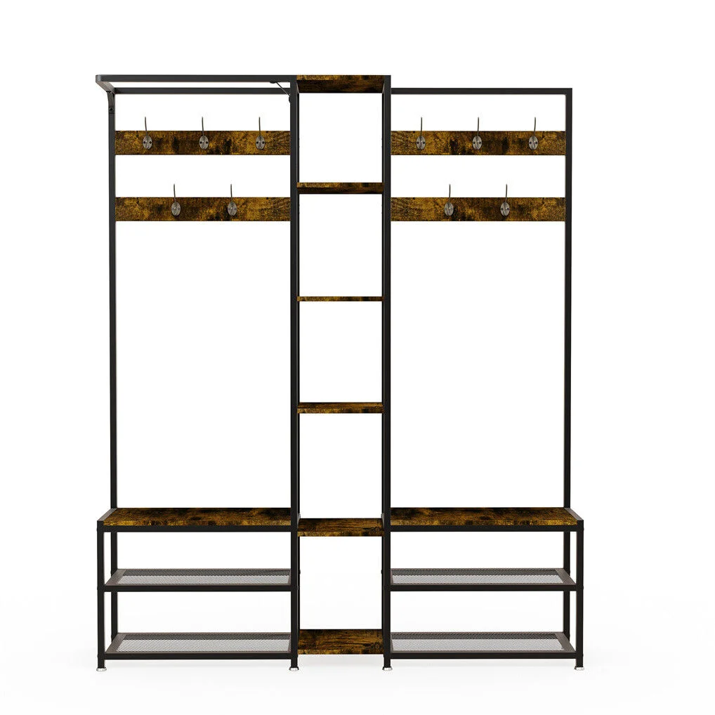 Corner Coat Stand with Shoe Bench Metal & MDF Organizer