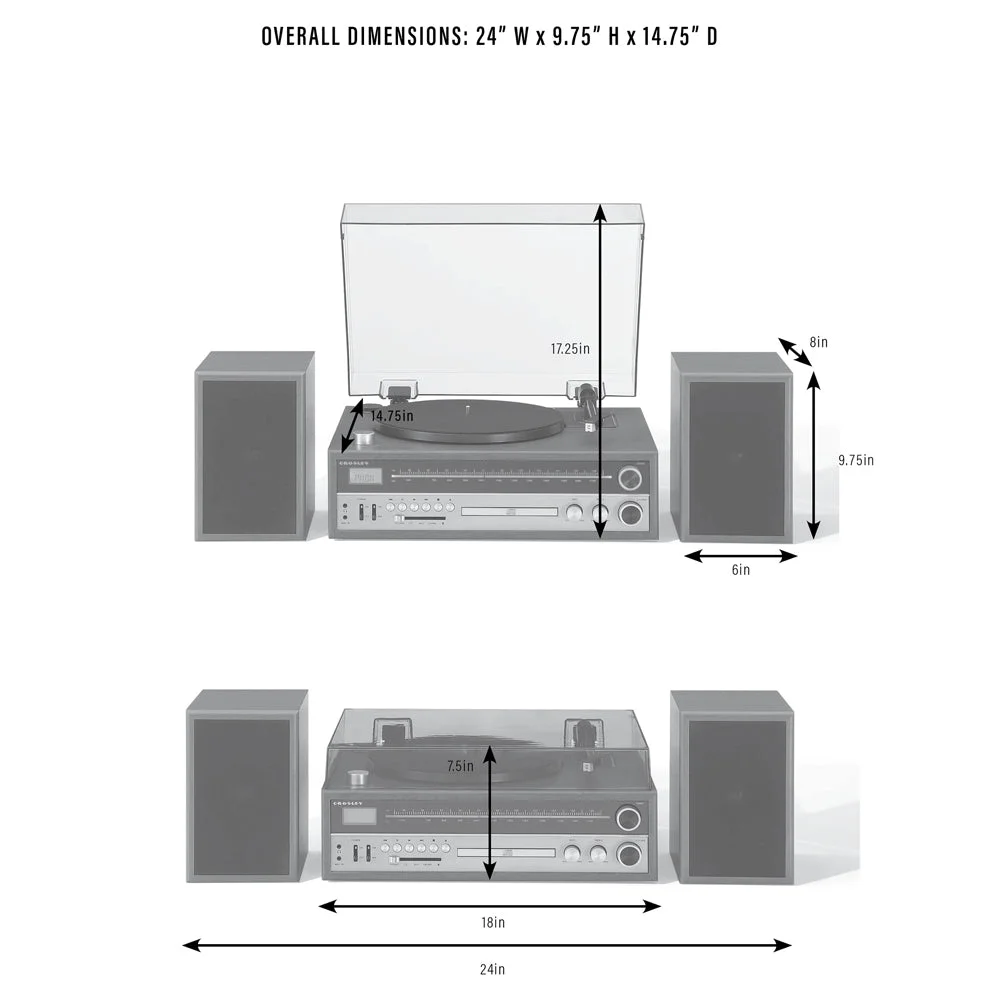 Crosley 1975T Vinyl Record Turntable Player - The year 1975 was defined by great music and the pursuit of a remarkable record collection. To celebrate this, Crosley created the 1975T, a vintage-inspired record player and speaker set that captures the essence of the seventies. Enjoy your favourite vinyl records and CDs through the matching 40-watt speakers, or listen to local AM/FM radio stations. With built-in Bluetooth, you can stream your favourite playlists directly from your phone. And if the neighbours ask you to lower the volume, simply connect your headphones and immerse yourself in your favourite songs.