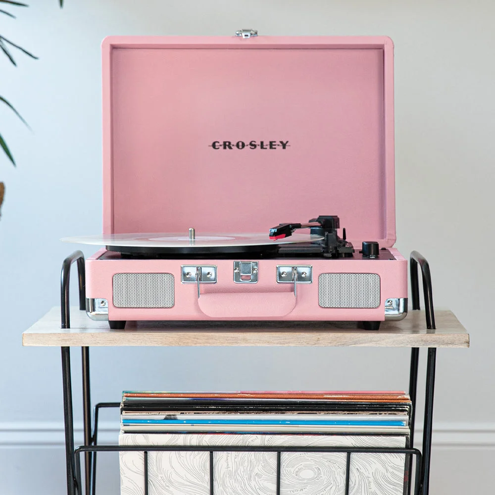 Some say you can’t improve on a classic, but we are here to prove them wrong with the Crosley Cruiser Bluetooth Portable Turntable - Blush Pink + Bundled Crosley Record Storage Display Stand. Features Bluetooth output functionality, so you can listen to your favourite records on the speaker system of your choice! The upgraded Cruiser design retains its charming portable suitcase shell in a rainbow of colours, three speeds and pitch control for all your listening needs, a Bluetooth receiver and built-in speakers so you can listen on the go.