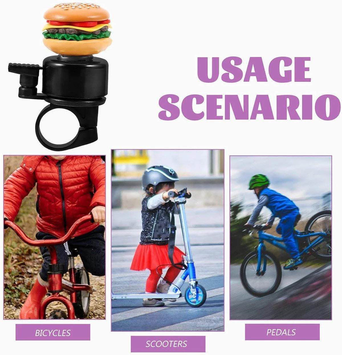 This charming bike bell with food-themed decorations is a fun and practical accessory for any cyclist. Designed with a unique burger, cupcake, fries, sandwich, and popcorn style, this bell adds a playful touch to your bicycle while also providing a clear and crisp sound. Perfect for alerting pedestrians and other cyclists of your presence, it combines functionality with fun style. Its easy-to-install design ensures it fits most handlebars, making it a versatile accessory for bikes, scooters, or small pedal bicycles.