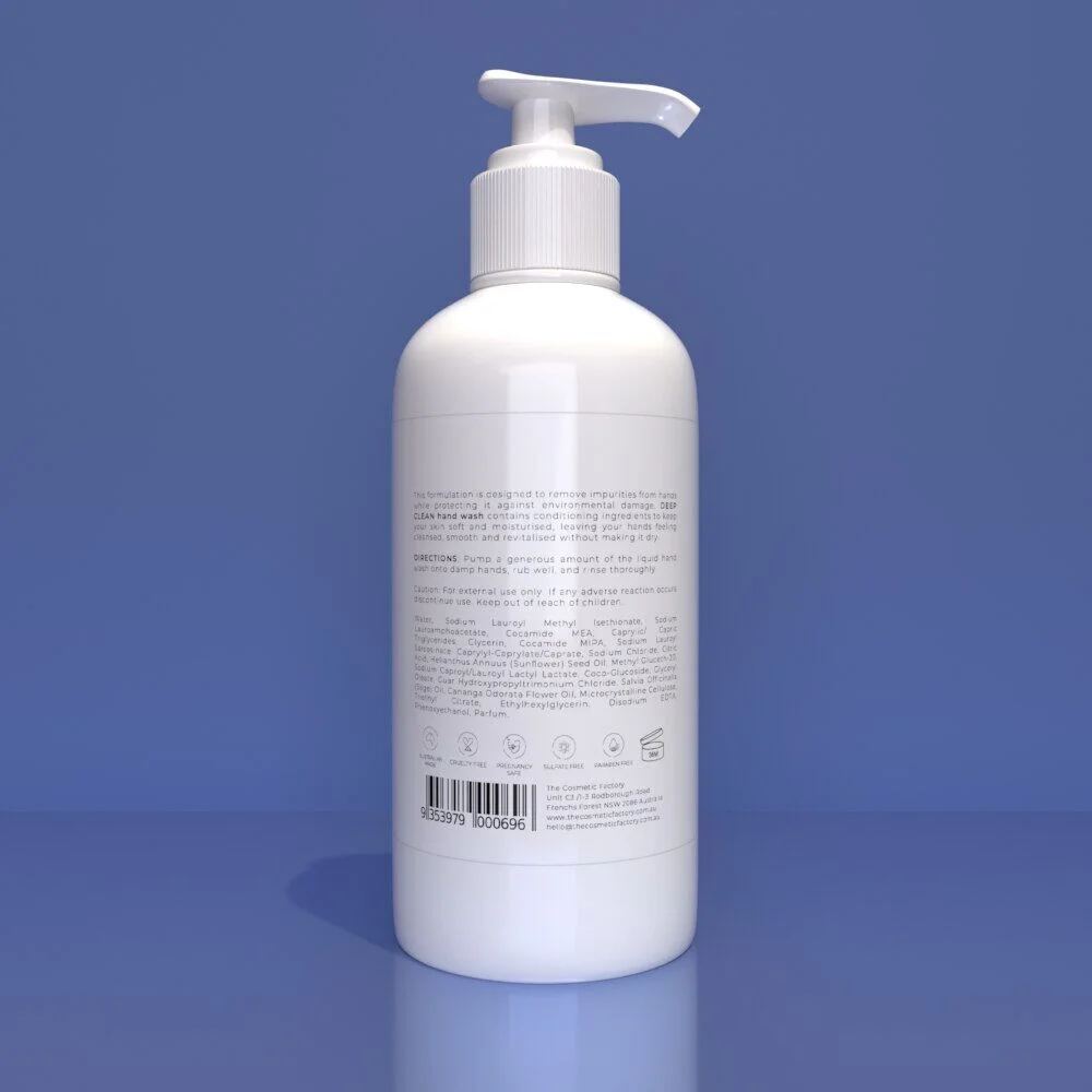 This formulation is designed to remove impurities from hands while protecting it against environmental damage. DEEP CLEAN hand wash contains conditioning ingredients to keep your skin soft and moisturised, leaving your hands feeling cleansed, smooth and revitalised without making it dry.