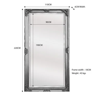 The Deluxe French Provincial Ornate Mirror in Silver measuring 210cm x 110cm is a stunning piece crafted in the French Provincial style. It features ornate detailing and a vintage-inspired design that gives it a rustic and timeless look, making it a perfect complement to a variety of interior design aesthetics. The mirror itself is extra-large and measures 210cm x 110cm, making it a statement piece that can add character to any room. It's perfect for use in a living room, bedroom, or even a hallway. The mirror is easy to hang and comes with attachments at the back, allowing it to be hung horizontally or vertically. The mirror is made from high-quality wood and mirror materials, ensuring durability and longevity. Overall, the Deluxe French Provincial Ornate Mirror in Silver is a beautiful and functional addition to any home décor.