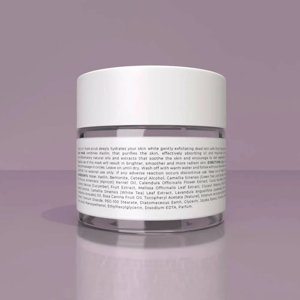 Aqua (Water),Kaolin,Bentonite,Cetearyl Alcohol,Camellia Sinensis (Green Tea) Leaf Extract,Polysorbate 80,Prunus Armeniaca (Apricot) Kernel Oil,Calendula Officinalis Flower Extract,Cocos Nucifera (Coconut) Oil,Cucumis Sativus (Cucumber) Fruit Extract,Melissa Officinalis Leaf Extract,Glyceryl Stearate,PEG-20 Stearate,Stearyl Alcohol,Camellia Sinensis (White Tea) Leaf Extract,Lavandula Angustifolia (Lavender)Extract,Persea Gratissima (Avocado) Oil,Rosa Canina Fruit Oil,Tocopheryl Acetate (Natural),Solanum Aviculare (Kangaroo Apple) Extract,Titanium Dioxide,PEG-100 Stearate,Diatomaceous Earth,Glycerin,Jojoba Esters,Pumice,Ceteareth-20,Citric Acid,Phenoxyethanol,Ethylhexylglycerin,Disodium EDTA,Parfum (Fragrance).