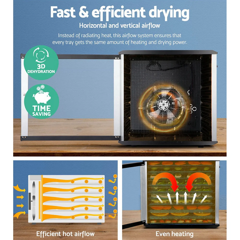 Devanti 6 Trays Food Dehydrator Stainless Steel Tray