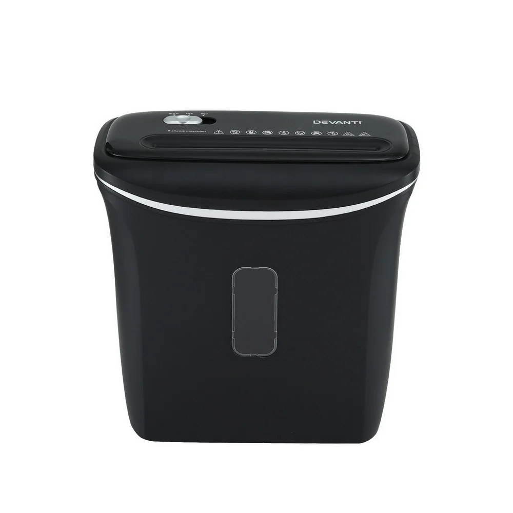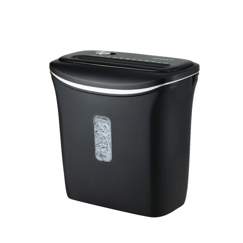 Secure your information with the Devanti cross-cut shredder. Capable of shredding up to 8 A4 sheets and credit cards at once, it features a 12L bin with viewing window, reverse function, auto safety stop, and overheat protection. With 2 minutes of continuous use, it's perfect for both home and office.
