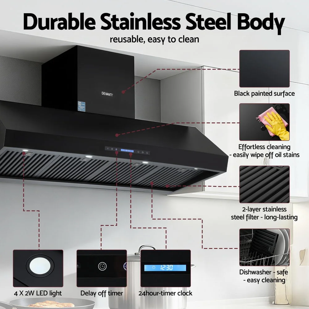 Upgrade your kitchen or outdoor BBQ area with the Devanti 1500mm Range Hood, delivering powerful 2000m?/hr suction to quickly remove smoke, grease, and cooking odors. Built with a durable stainless steel body and a premium textured black finish, this large rangehood is both stylish and long-lasting.
