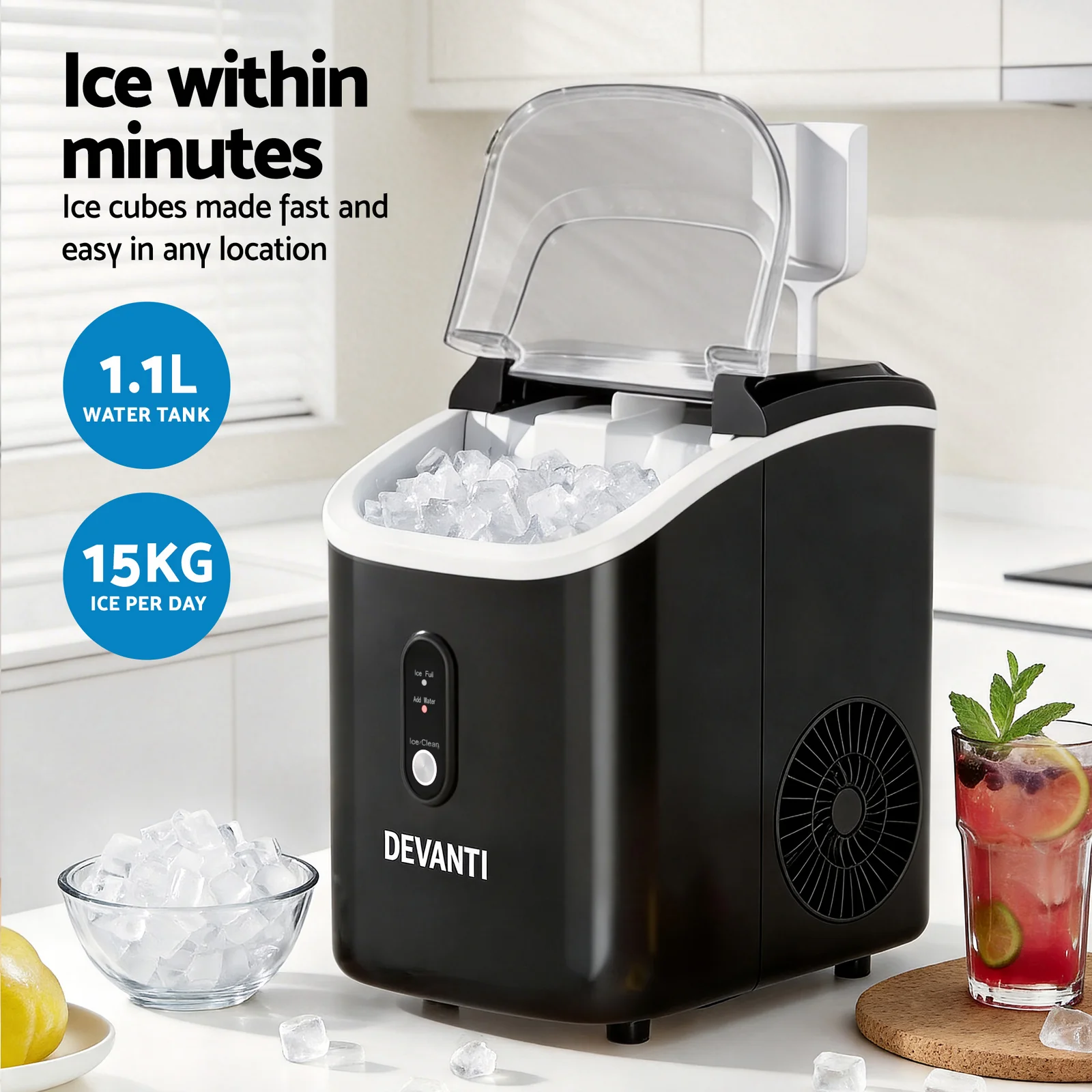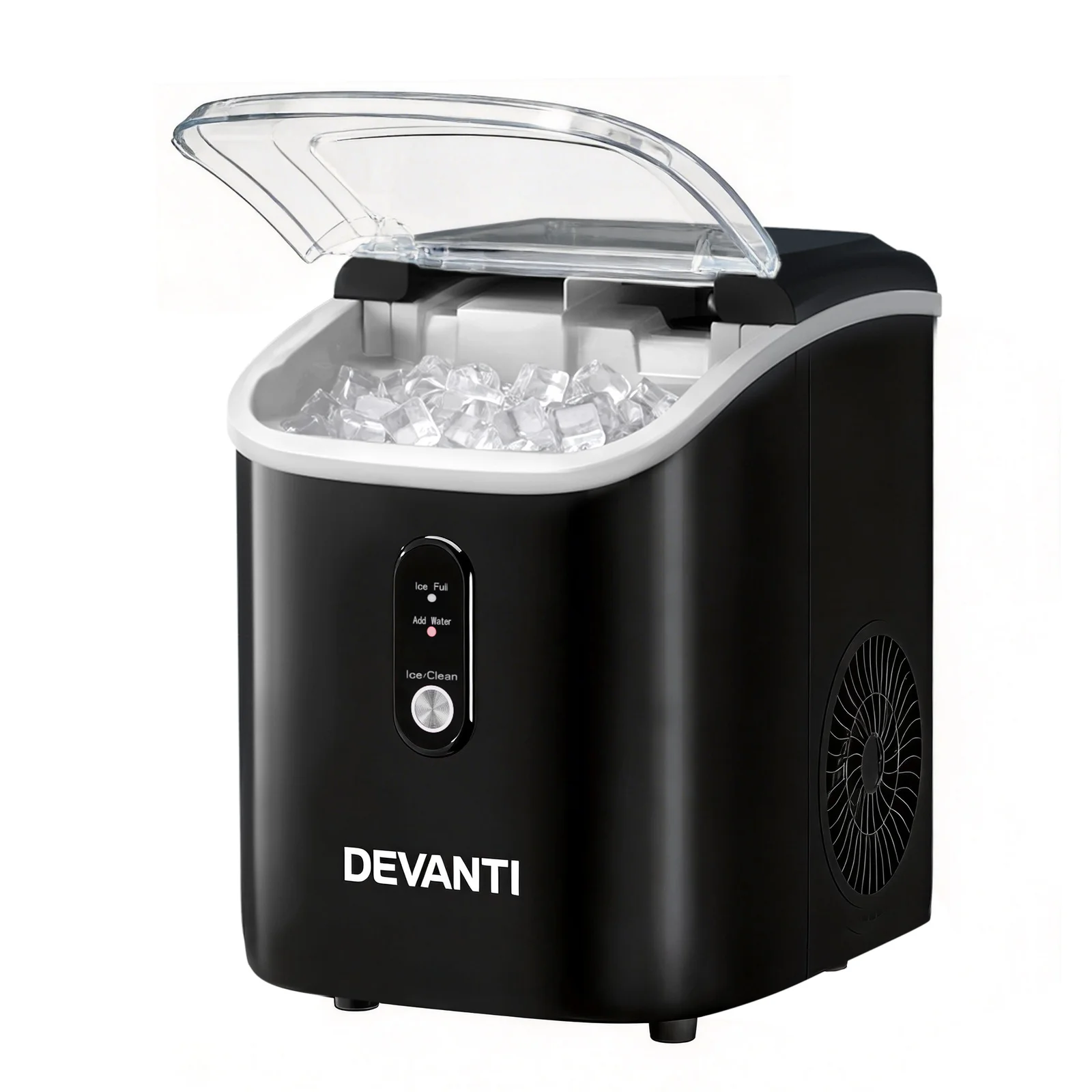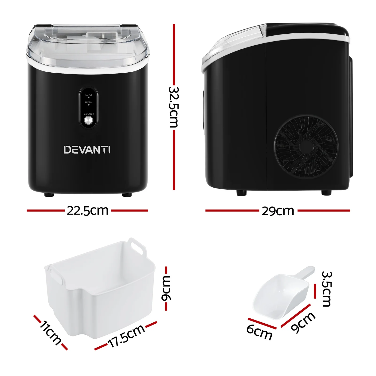 Looking for ice in a hurry? Meet our Devanti Ice Maker! Quickly produce ice cubes in 5-10 minutes. It's loaded with smart features like water shortage and ice full alarms, plus energy-saving technology through Freon-free refrigerant and enhanced heat dissipation. Its sleek, compact design fits anywhere, and with its easy-to-use controls, youll be enjoying cold beverages in no time. Ice at home has never been cooler!