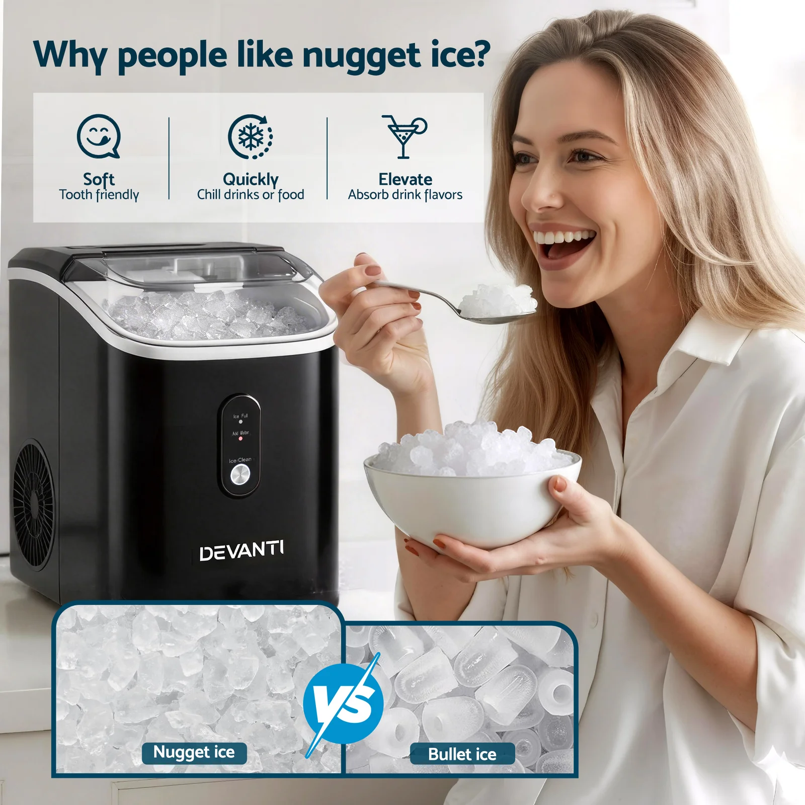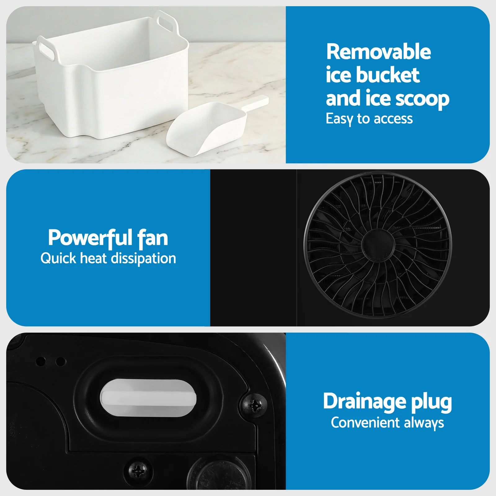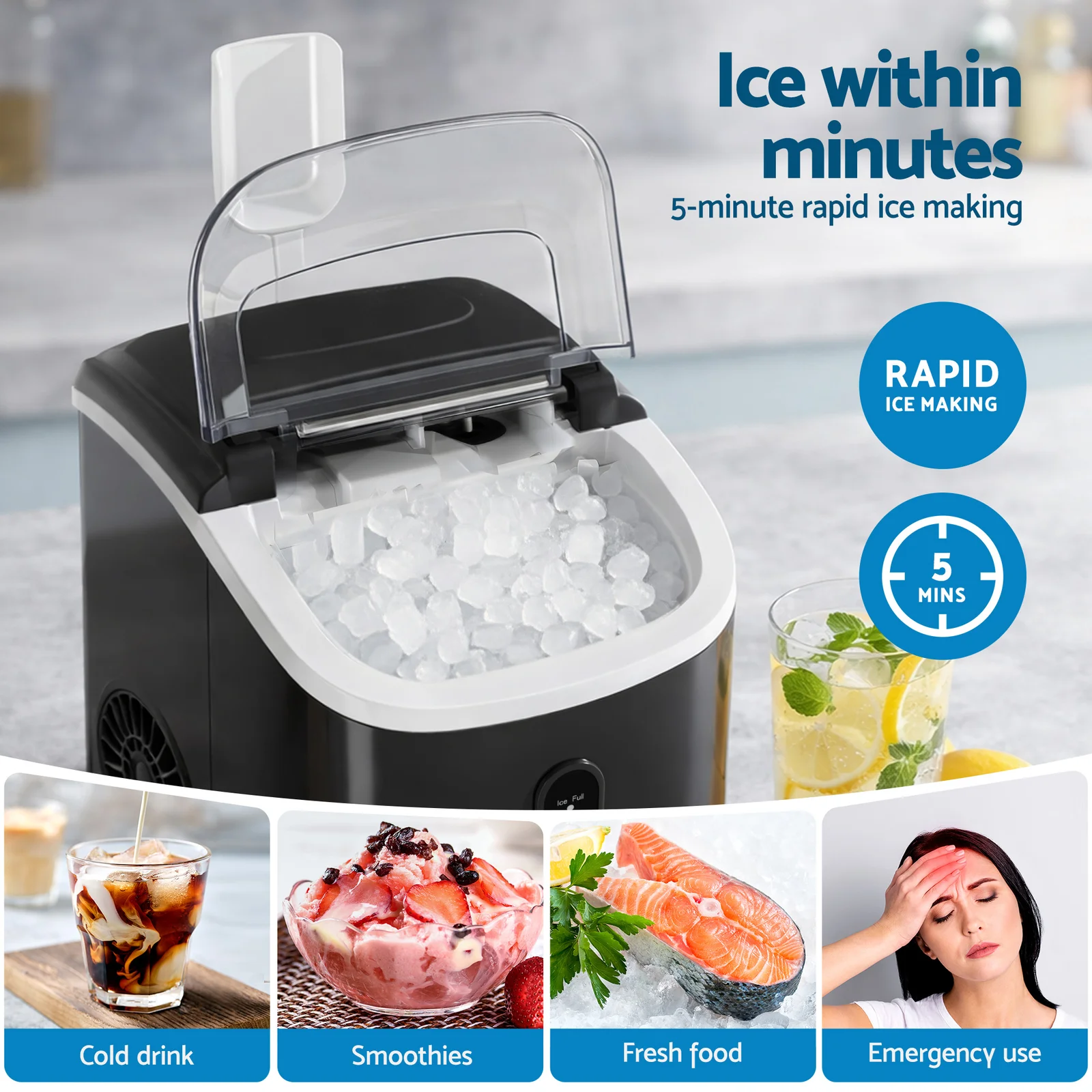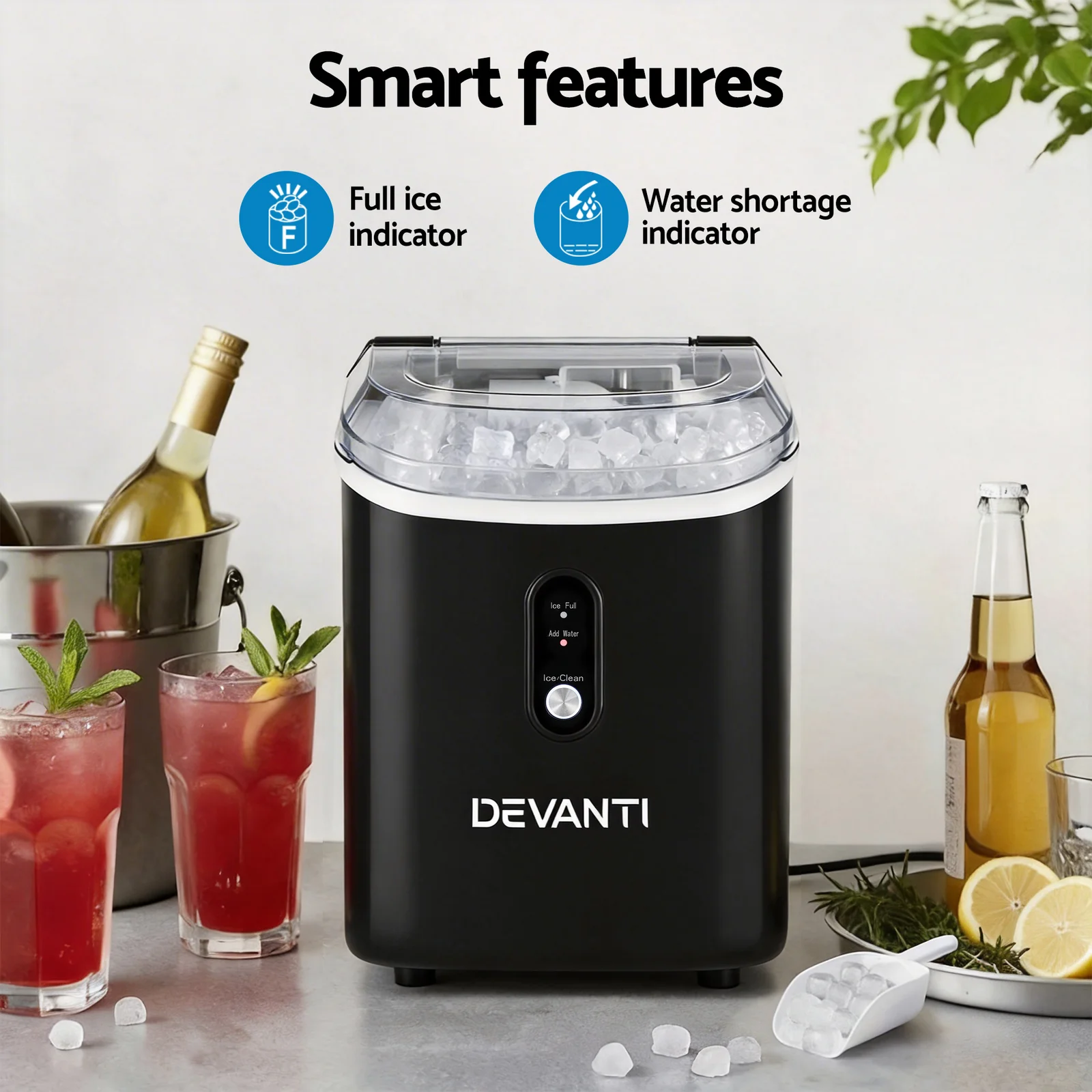 Looking for ice in a hurry? Meet our Devanti Ice Maker! Quickly produce ice cubes in 5-10 minutes. It's loaded with smart features like water shortage and ice full alarms, plus energy-saving technology through Freon-free refrigerant and enhanced heat dissipation. Its sleek, compact design fits anywhere, and with its easy-to-use controls, youll be enjoying cold beverages in no time. Ice at home has never been cooler!