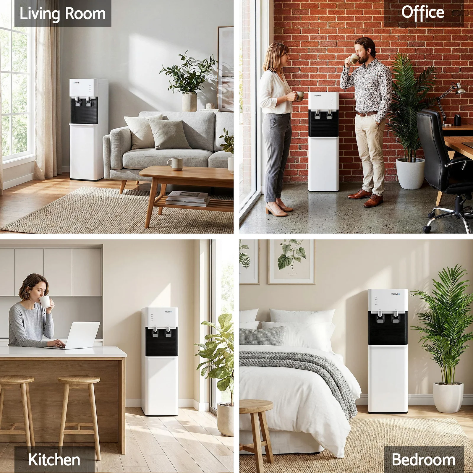 Experience the perfect blend of style and functionality. Our new generation water cooler eliminates the struggle of lifting heavy bottles with its innovative bottom-loading system. Designed for the modern Australian lifestyle, this water dispenser provides instant access to both ice-cold and tea-ready hot water, ensuring your household or team stays hydrated and refreshed all year round.
