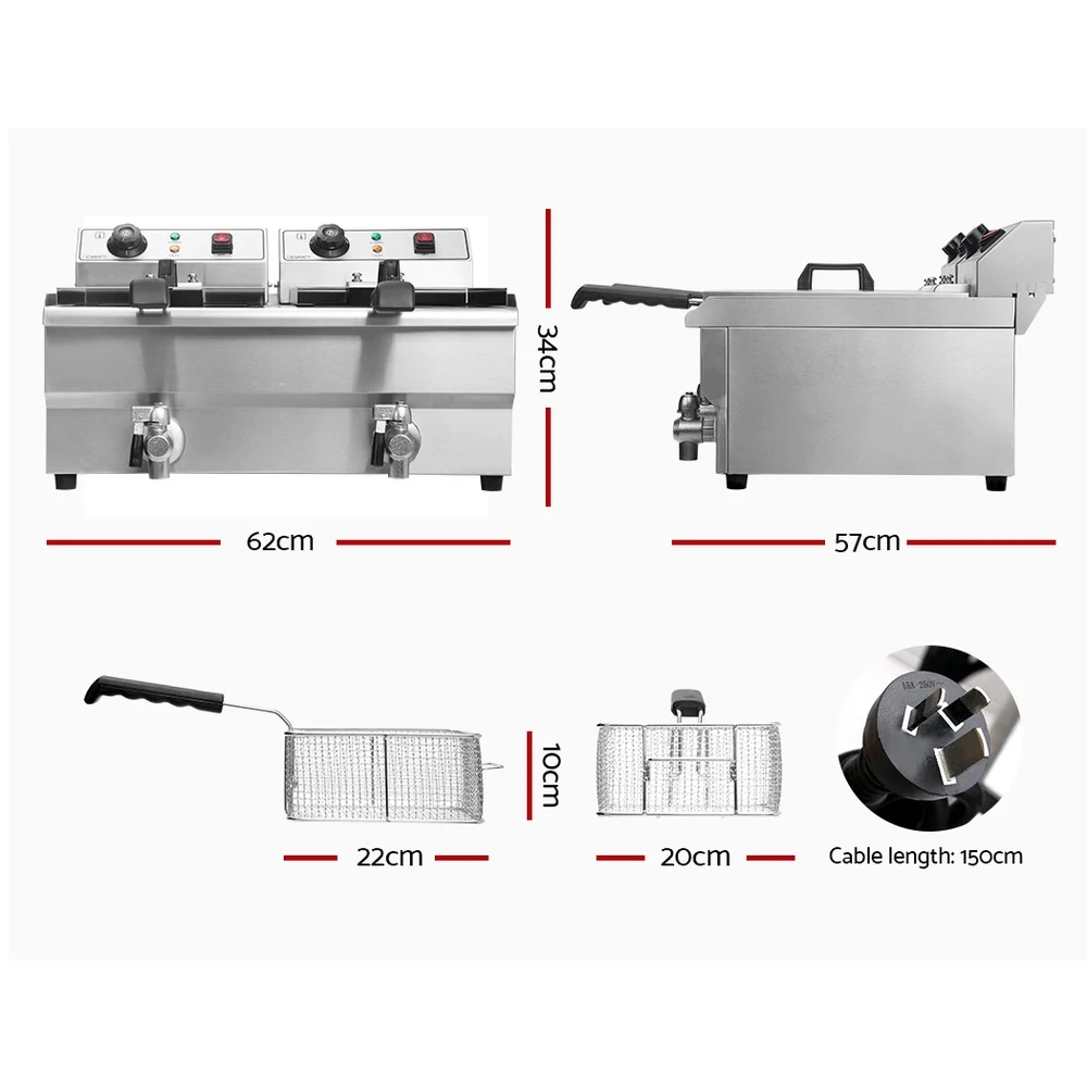 Devanti 20L Electric Commercial Deep Fryer Double Baskets 4400W