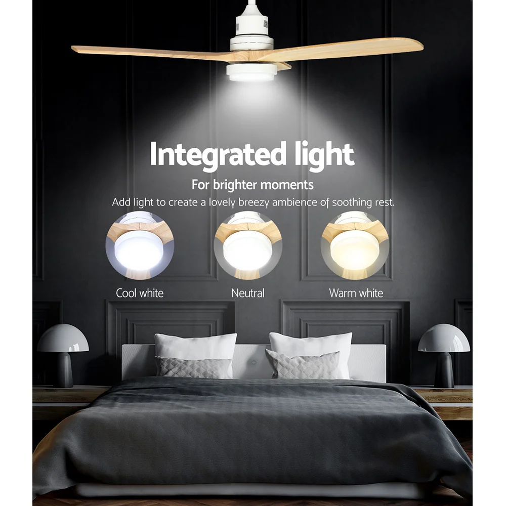 Devanti 52'' Ceiling Fan DC Motor 3 Blades w/Light - Dark Wood