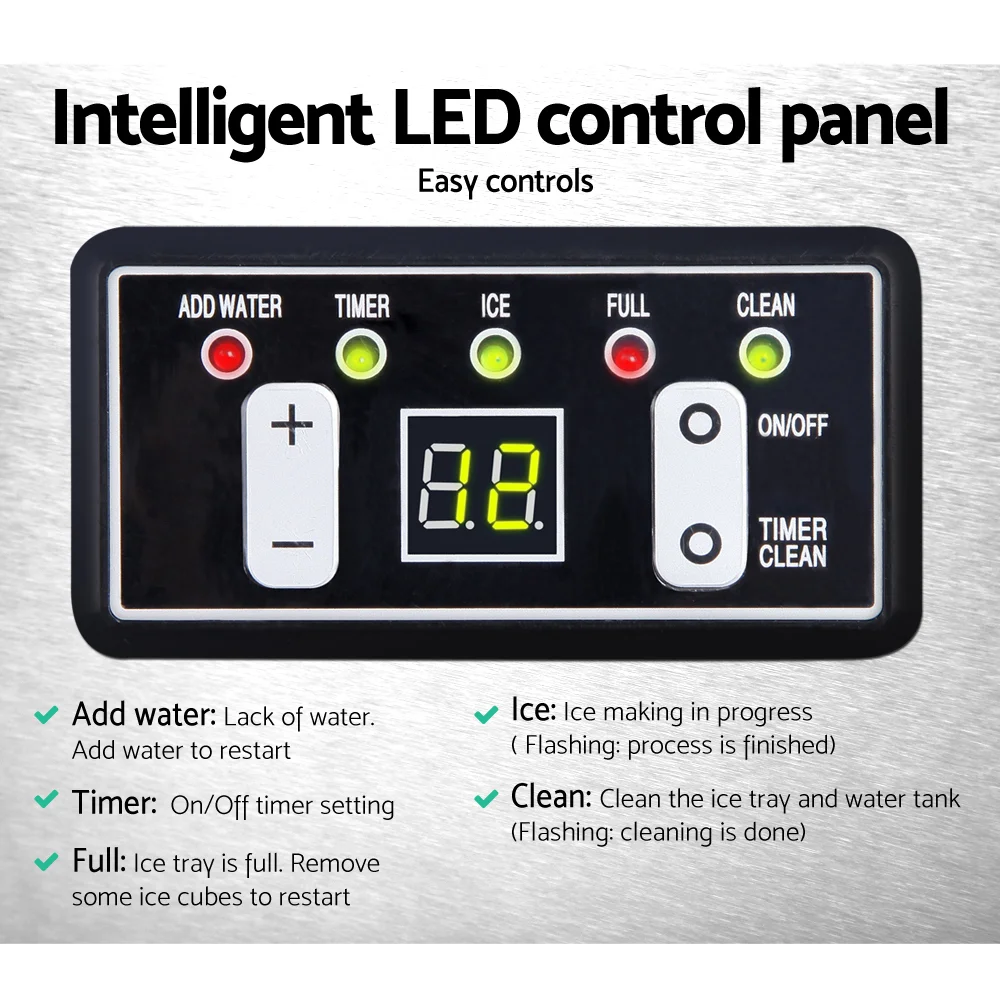 Devanti 2.4L Stainless Steel Portable Ice Cube Maker