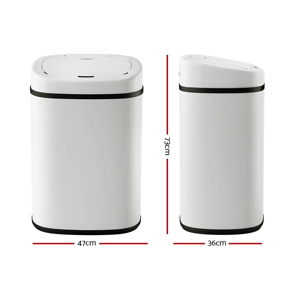 Keep your home clean, tidy and germ-free with a Devanti Motion Sensor Bin. Activated by just the wave of your hand (within a 20cm range), the motion sensor bin makes it easy to dump your trash cleanly and hygienically. With a large 82L capacity, you won't need to clear your bin immediately to make room for more trash. A fingerprint-resistant steel surface keeps your kitchen looking shiny and bright. No more worrying about the bin liner moving out of position with the convenient bag retaining ring. The soft opening and closing make the bin completely noise-free. The lid also prevents any odours from getting out, so you can dispose of your trash hassle-free. Powered by four AA batteries, you can simply turn on the power switch and enjoy using the bin or switch to manual operation using the simple control panel. Fight common kitchen bacteria and keep your home clean and clear with a Motion Sensor Bin from Devanti.