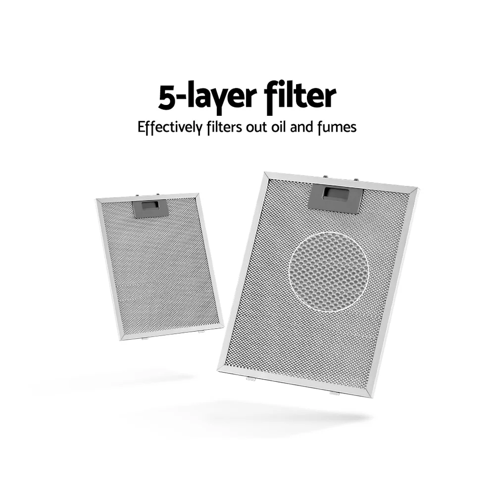 Do you suffer from stifling odours and stubborn smoke or steam from your cooking? Say goodbye to smells and stains with the Devanti 90cm Range Hood. Made from stainless steel with a sleek glass visor, the range hood looks and functions perfectly for a busy kitchen. Featuring a powerful extraction rate of 180m³/hr from a high-performance motor, our stainless-steel range hood will clear the air of smoke, steam, odours and vapours in no time. The non-stick and removable 5-layer aluminium grease filter ensures all grease is efficiently captured. Clear and bright LED lights and a stylish glass visor also provide vivid illumination for your cooking area, so you can see everything you're cooking. Completing the job is a 3-speed fan that can be easily selected with the push button controls. The range hood is easy to install and suitable for 12cm diameter exhaust tubes, standard Australian plugs, and ducted or recirculated exhaust modes. For clean and clear air in your home, you can't cook without a Devanti Range Hood.