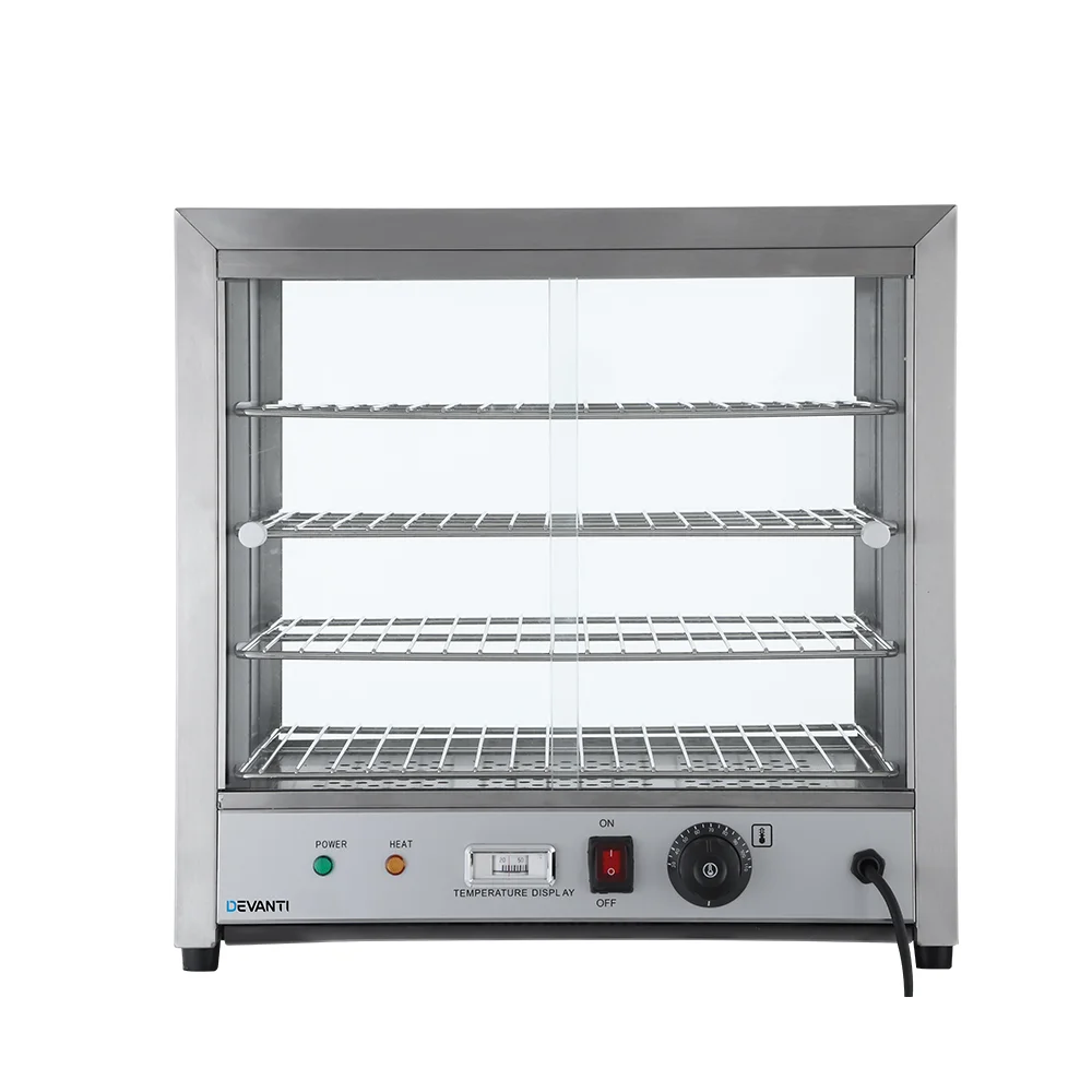 Display your tasty food in the best way possible with the Devanti Commercial Food Warmer. The all-tempered-glass 4-tier showcase is strong and durable and allows for easy viewing on all four sides. The S-shaped heating elements help to keep the food warm at the desired temperature. Thanks to the adjustable thermostat that can set temperature to be between 300C and 1100C. The four food-grade stainless steel trays are totally hygienic and can be removed without hassle. Better still, the rear sliding tempered glass door enables easy access with minimum hassles while a removable crumbs tray makes cleaning so much easier. Not least, the warm lighting adds a nice and delicious aura to your food at all times.