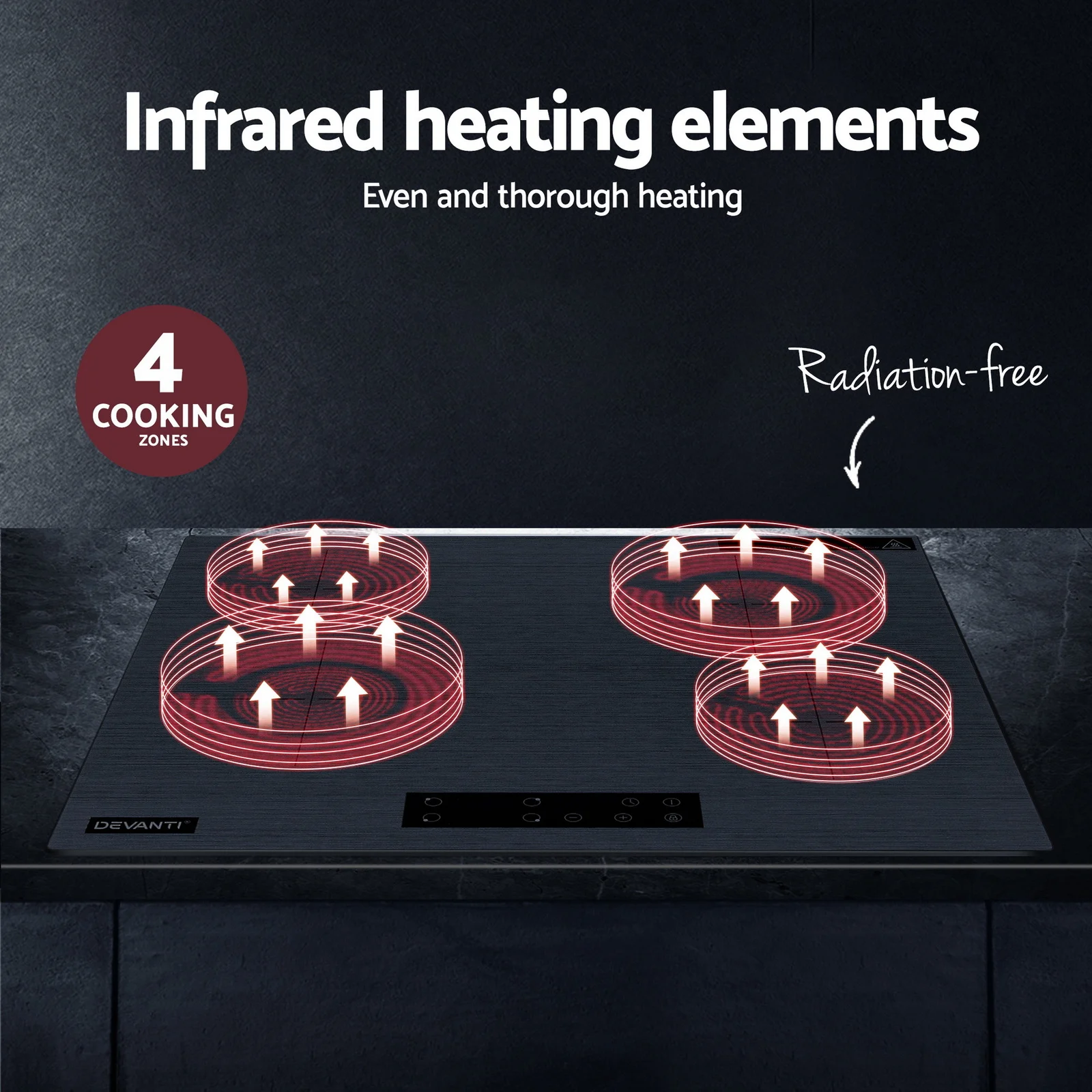 Upgrade your kitchen with the Devanti 60cm Ceramic Cooktop, featuring a stunning Grey Brushed-Effect Ceramic Glass surface. Unlike standard black cooktops, this model offers a sophisticated gunmetal grey hue with a textured linear design, resembling brushed stainless steel but with the easy-clean properties of glassThe unique grey finish not only elevates your kitchen's aesthetic but is also more practical, as it hides fingerprints and minor smudges better than plain black glass. The sleek touch control panel remains deep black, creating a modern, high-contrast look.