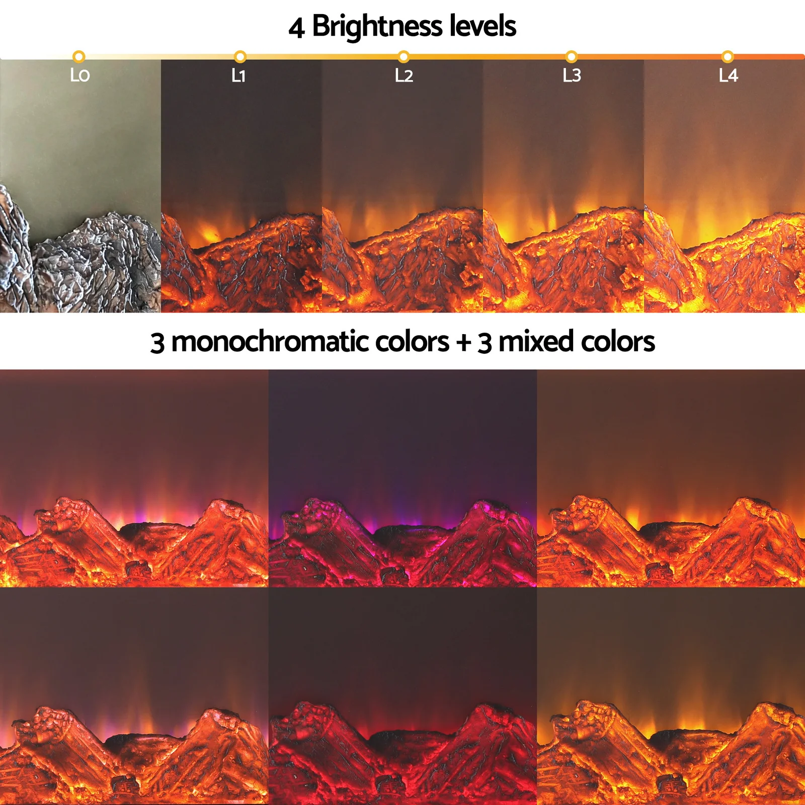4 levels of flame brightness adjustment