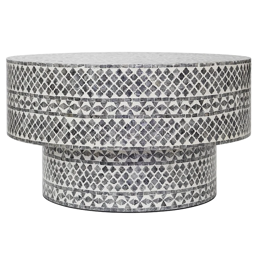 Embellished with real seashells, our stunning diamond patterned coffee table joins our new line of Capiz furniture. Beautifully and carefully placed shell pieces radiates an exotic and elegant vibe that is certain to enrich your decorated interior.